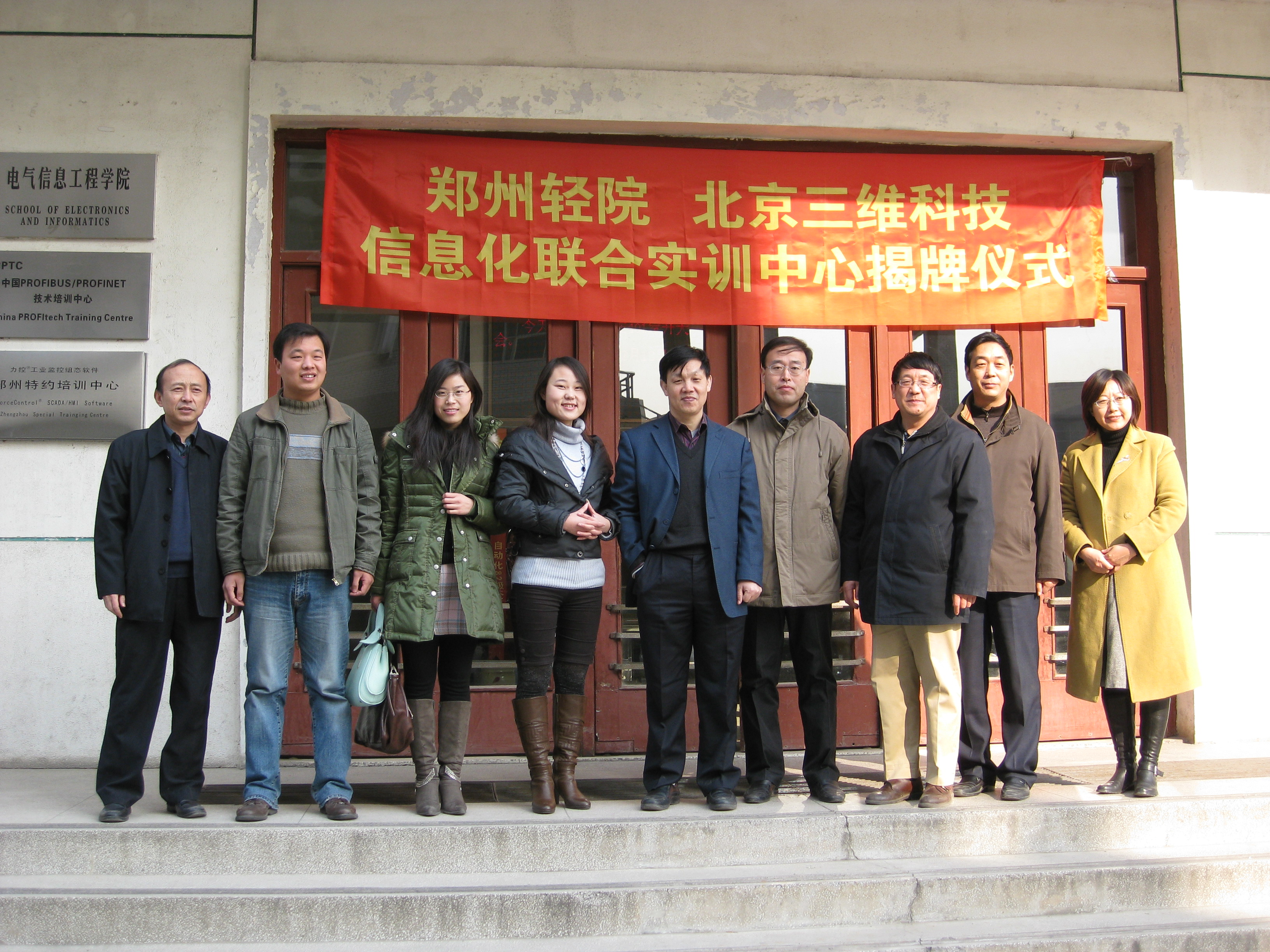 上午,郑州轻院与北京三维科技有限公司信息化联合实训中心揭牌仪式在西二楼门前举行,北京三维科技有限公司负责人、电气信息工程学院领导班子及教师代表参加了揭牌仪式。