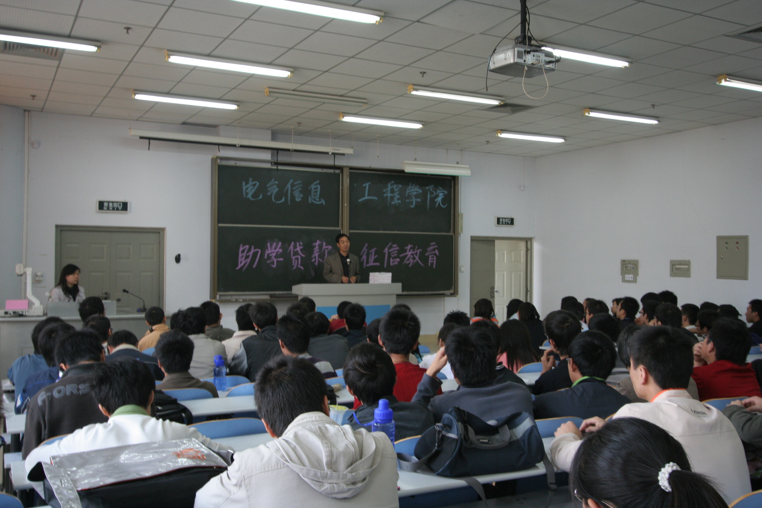 10月30日下午和10月31日中午,电气信息工程学院分别在科学校区电教楼102室和东风校区教三楼201室举行了2008年度新生、老生贷款暨征信教育工作大会,电气信息工程学院党总支副书记刘吉彬老师和全体专职辅导员老师参加了此次会议。