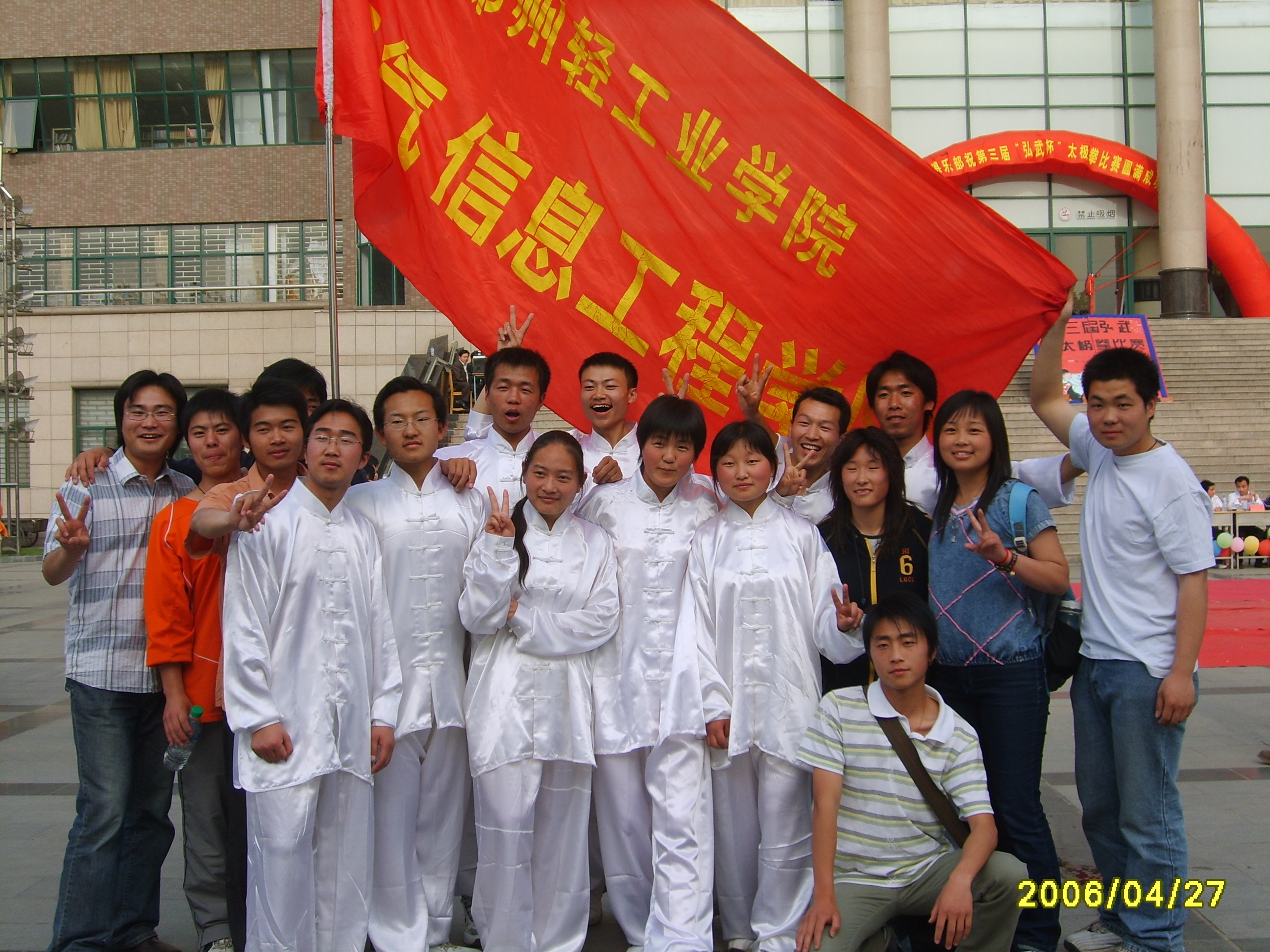 4月27日下午,我校科技文化艺术节第三届"弘武杯"太极拳比赛在校图书馆广场举行.