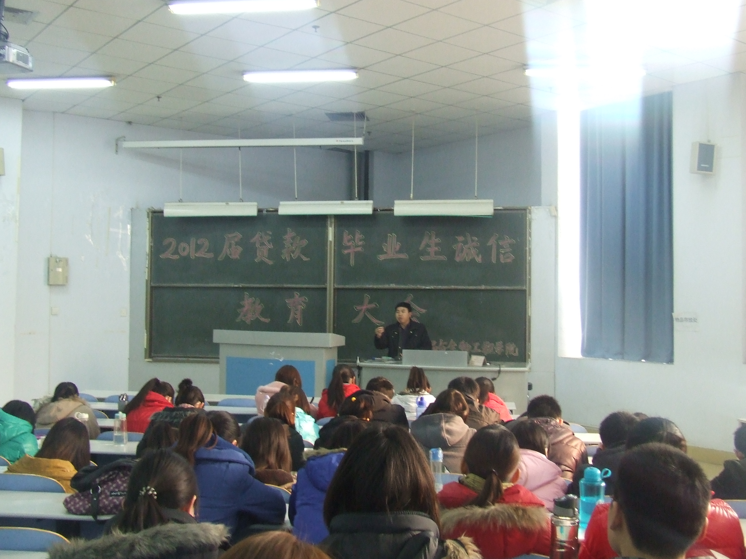 为提高贷款毕业生对国家助学贷款政策的认识,进一步强化学生的诚信意识,2011年12月28日下午2:30,食品与生物工程学院在教三楼202召开2012届贷款毕业生诚信教育大会。党总支吴占超副书记作了重要讲话,我院全体贷款毕业生、负责贷款工作的老师参加了此次大会。