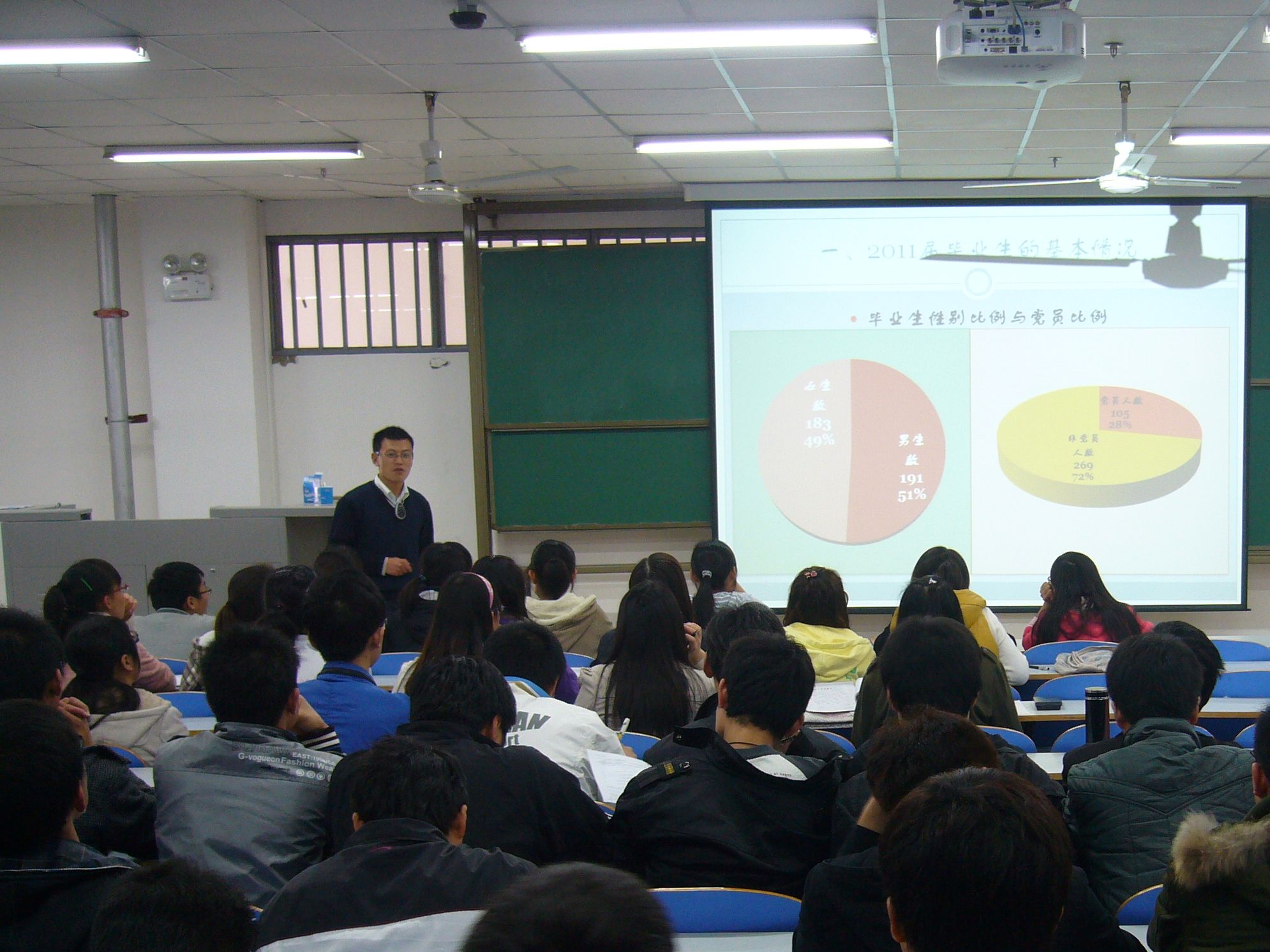 《国务院关于支持河南省加快建设中原经济区的指导意见》指出,食品工业是中原经济区建设优势发展的主导产业之一。为了培养食品相关专业同学们的创业、就业能力,将来更好的服务中原经济区建设,11月11日晚上,食品与生物工程学院在科学校区主教楼815教室举行了“创业、就业形势报告会”。我院驻科学校区辅导员老师、200余名学生参加了报告会。