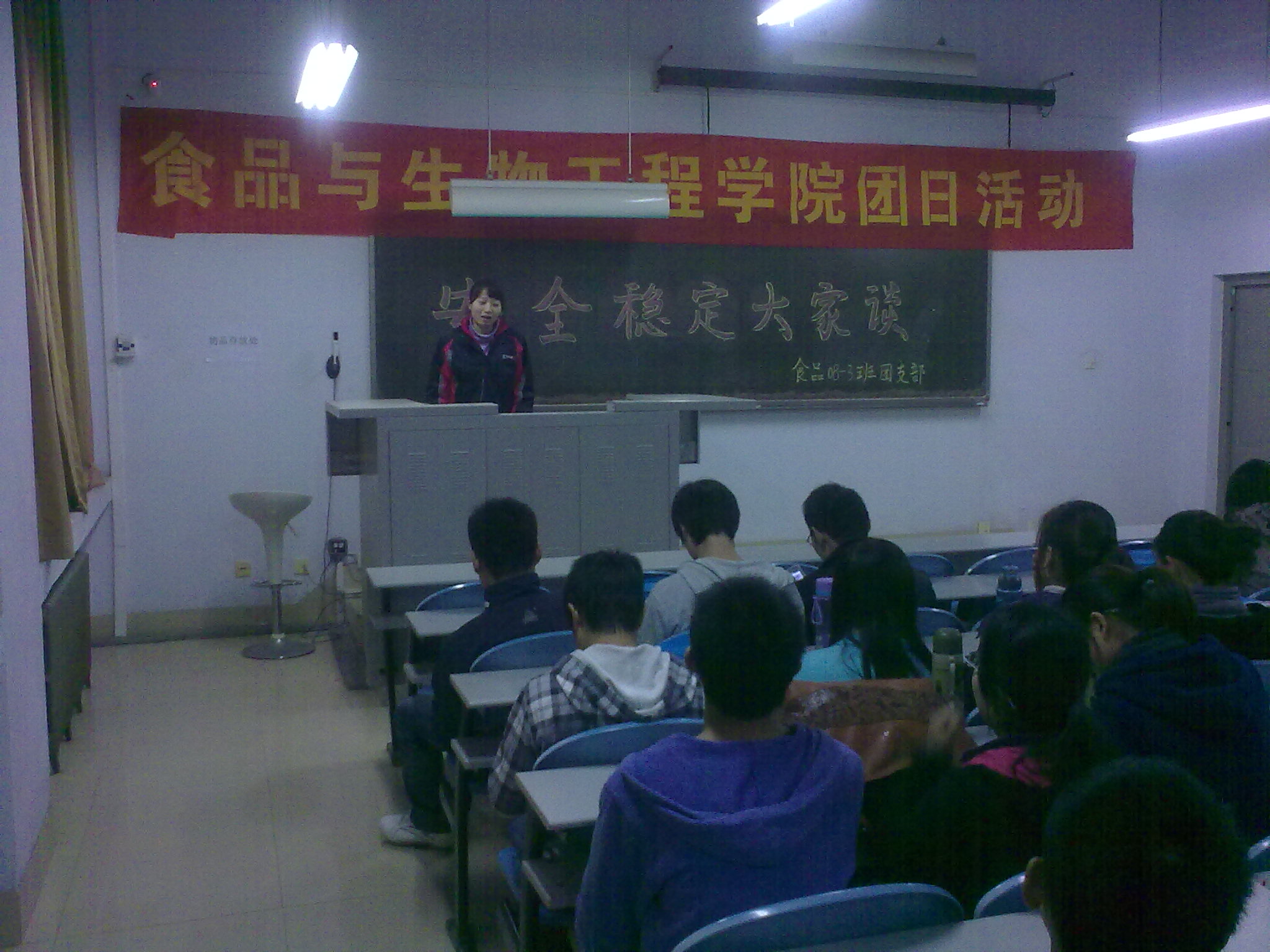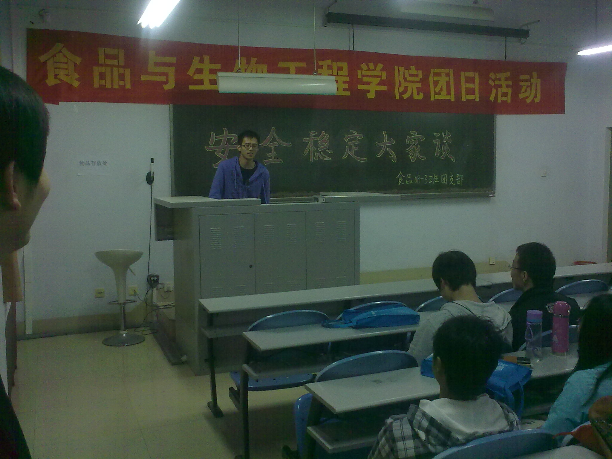 根据学工部、团委关于开展安全稳定教育的要求,我院分团委积极行动,在各个团支部组织开展了此次主题团日活动。活动以自我管理、自我教育、自我服务为指导;以“学生积极参与,案例教育为主,经验教训共享,共铸安全稳定”为目标,以开展防火、防盗、防骗、防病、交通、饮食安全等安全稳定教育为主要内容;分三个阶段进行:1、发挥团员学生的主动性,在学生中广泛征集安全稳定案例;2、选择有代表性的案例在团支部会上与大家一起分享;3、把征集的案例整编成《食品与生物工程学院学生安全稳定知识手册》,今后在学生中广泛宣传安全稳定知识。