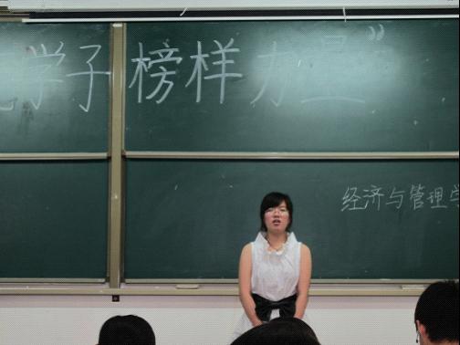 2012年5月15日下午,经济与管理学院在科学校区电教楼108举办了“轻院学子,榜样力量”优秀大学生初步选拔赛,经管学院优秀学子积极参加比赛。