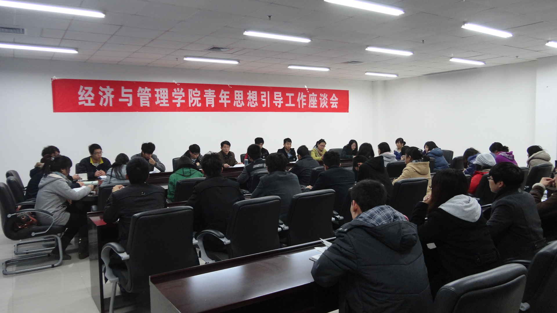 座谈会上,陈老师首先向大家介绍了团中央提出分类引导青年工作的重要意义,全团青年可以分为四大类:农村青年、企业青年、进城务工青年及大学生,对于大学生,要着重引导他们了解在党的领导下我国社会主义现代化建设取得的成就,正确认识世情、国情、党情,理性认同爱国主义、社会主义、党的领导的有机统一。陈老师还向大家提出我院共青团组织应该怎样去做好分类引导青年工作,尤其是作为团学干部,应该不断提升个人素质,牢固树立为社会、为学院做贡献的信念,做现代社会需要的人才。接着,同学们紧紧围绕“如何理性表达爱国情感”、“如何理性认同中国特色社会主义道路”、“如何理性看待贫富差距和社会公平问题”、“如何树立积极向上的人生价值观”、“如何全面客观看待当前的就业难问题”等积极踊跃地发表自己的见解和意见,并就经济与管理学院今后如何加强青年大学生的思想引导提出了许多合理化的建议和方案。