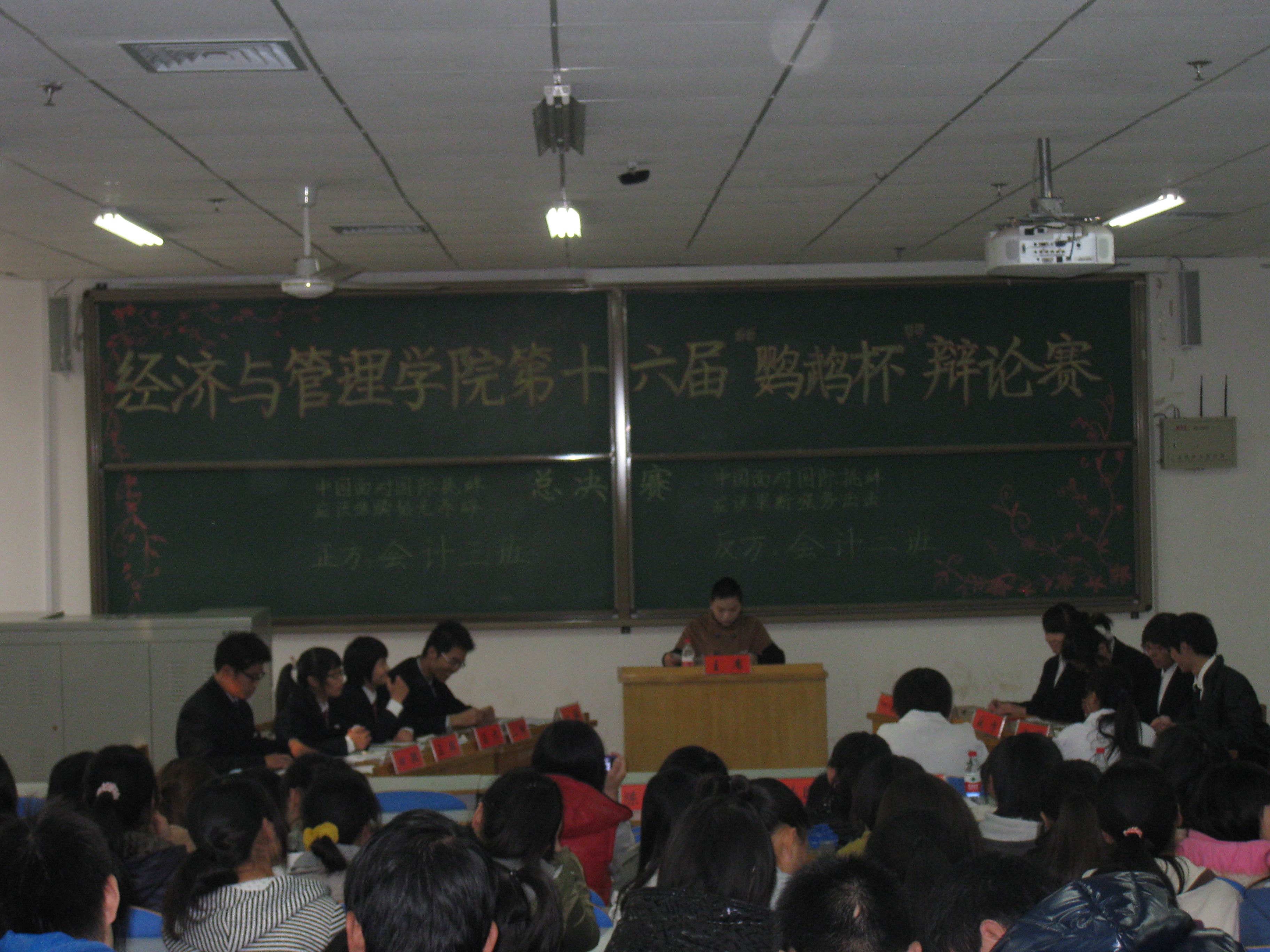 为纪念辛亥革命100周年,激发同学们的爱国热情,弘扬民族精神,11月24日,经济与管理学院举办了以“振兴中华,民族复兴”为主题的第十六届“鹦鹉杯”辩论赛总决赛。