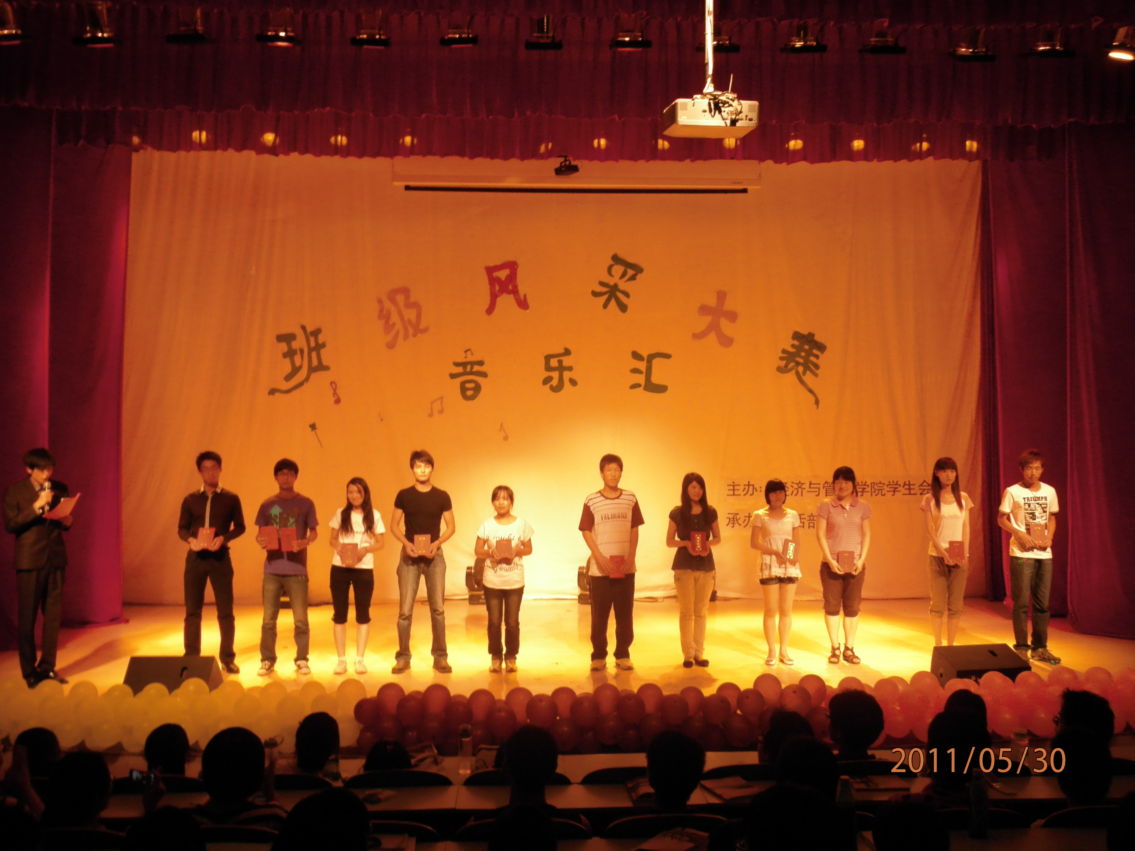 本次“班级风采大赛”系列活动主要包括知识竞答、运动比拼、音乐汇三个环节,历时半个月。5月29日晚,我院在科学校区电教楼208室成功举办了“班级风采大赛之音乐汇”。比赛中,同学们激情的演唱,一首首深入人心的校园歌曲把现场气氛一次次推向高潮。特别是演唱《听袁惟仁弹吉他》的同学独自一人演唱了歌曲中3个歌手的声部,一个人演唱了三个人的歌,令现场的同学赞叹不已,把音乐汇推向了又一个高潮,街舞、相声、小品等友情演出让音乐会更加丰富多彩。