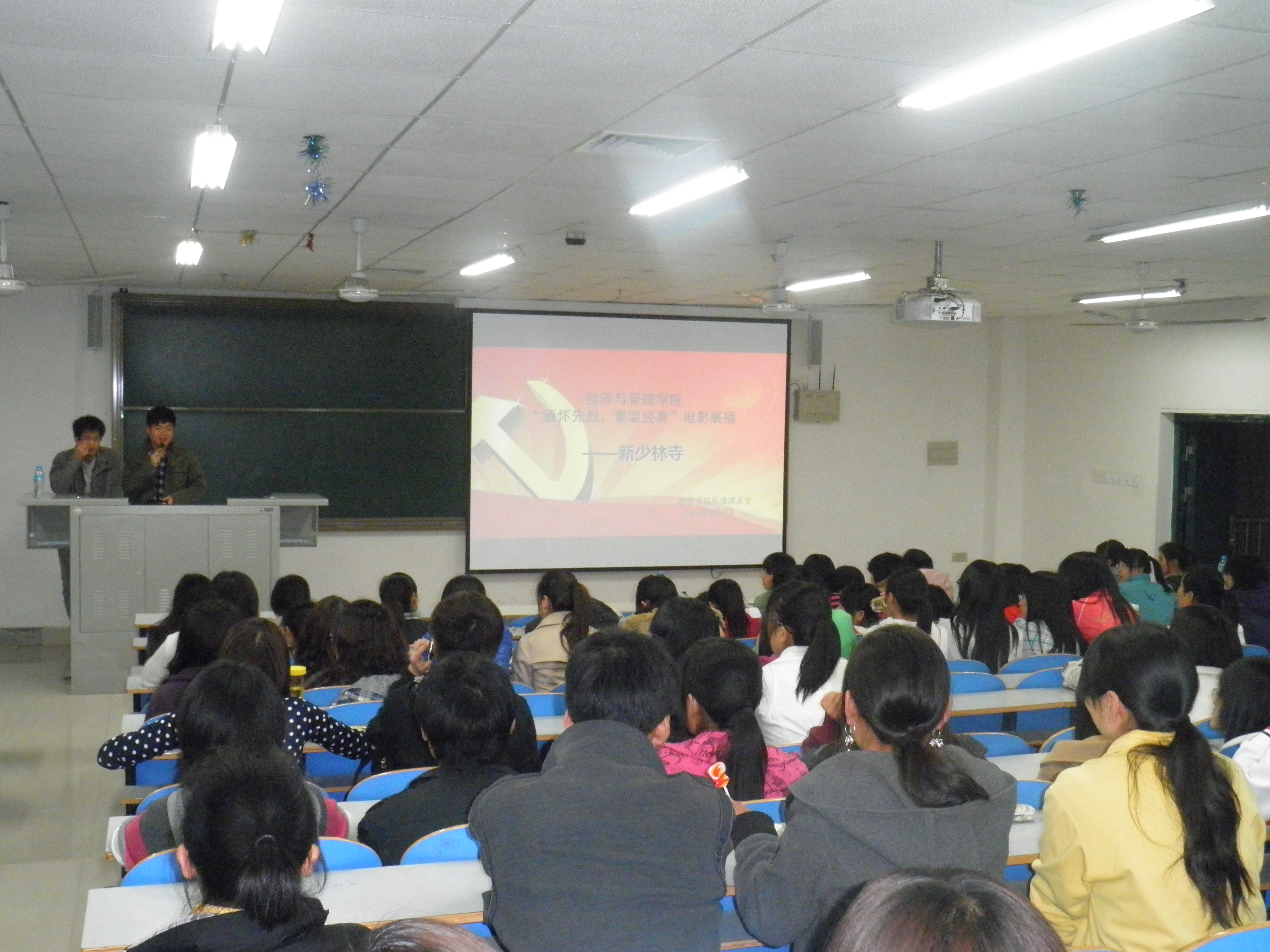 为弘扬爱国主义精神,深入开展爱国主义教育,经济与管理学院于4月7日19:00在科学校区电教楼401、402、403开展了以“缅怀先烈,重温经典”为主题的电影展播活动。
