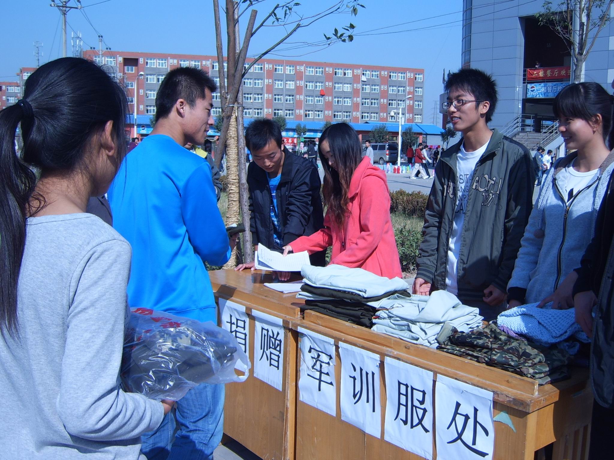 本次军训服装捐赠活动面向我校科学校区全体同学,在生活饮食服务中心广场设立捐赠点。在捐赠活动中,得到了我校各院系广大同学的大力支持,共收到同学们捐赠的军训服装600余套。我院将同学们捐赠的军训服装进行清洗、整理、打包,捐赠给了郑州市红十字会。郑州市红十字会工作人员对同学们的爱心活动给予了充分肯定,并表示:一定将同学们捐赠的军训服装分发到贫困地区和灾区人民手中。