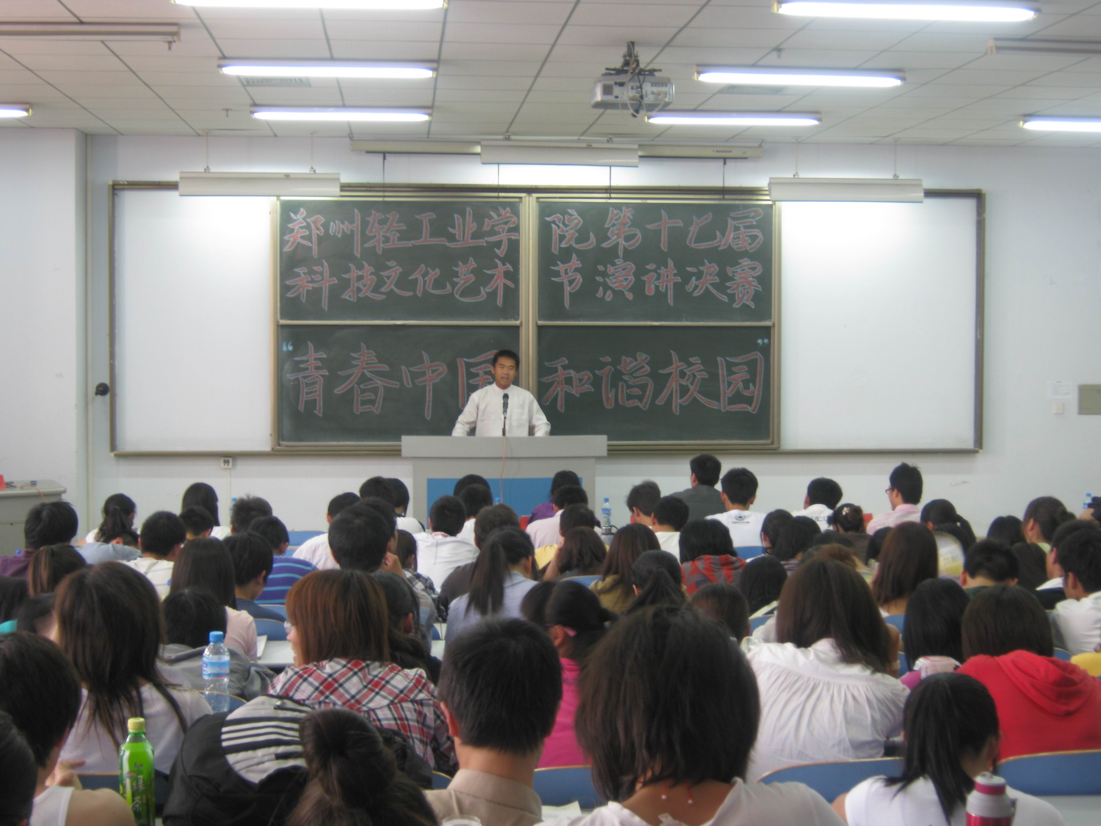 5月6日下午3:00,由校团委主办、经济与管理学院承办的我校第十七届科技文化艺术节之演讲比赛决赛在东风校区教三楼204举行,本次比赛以“青春中国,和谐校园”为主题,经过预赛的激烈角逐,来自全校13个院系的15名选手进入决赛。