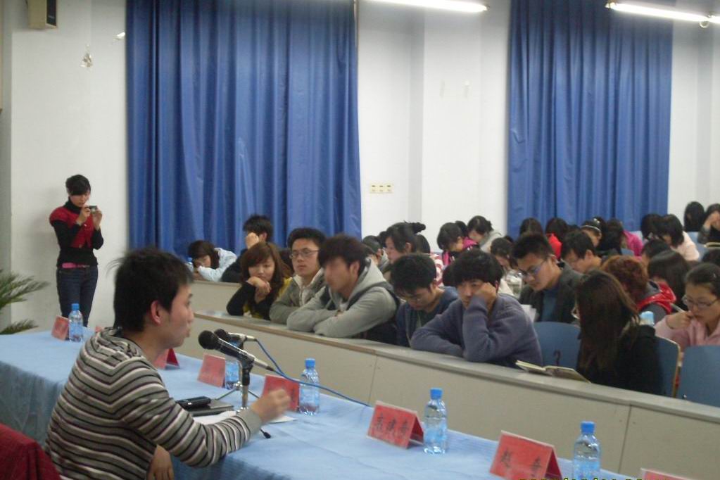 最后蒋玮副处长致辞。她对我院率先在全校举办“心理健康月”系列主题教育活动给予了充分肯定。她指出,良好的心理素质有利于增强抗挫折能力和心理调适能力,有利于形成乐观向上、自信自强、团队协作的良好个性品质,我校非常重视在校学生的心理健康教育,成立了校心理健康教育中心,逐步形成了校、院系、班级三级心理资讯网络,并通过新生心理健康普查、日常心理咨询、心理健康教育网站、心理健康知识讲座、选修课等多种途径加强学生心理健康教育,取得了积极效果。希望广大同学珍惜机会,积极参与到活动中来,进一步把心理健康教育引向深入,为学校心理健康教育积累宝贵经验。