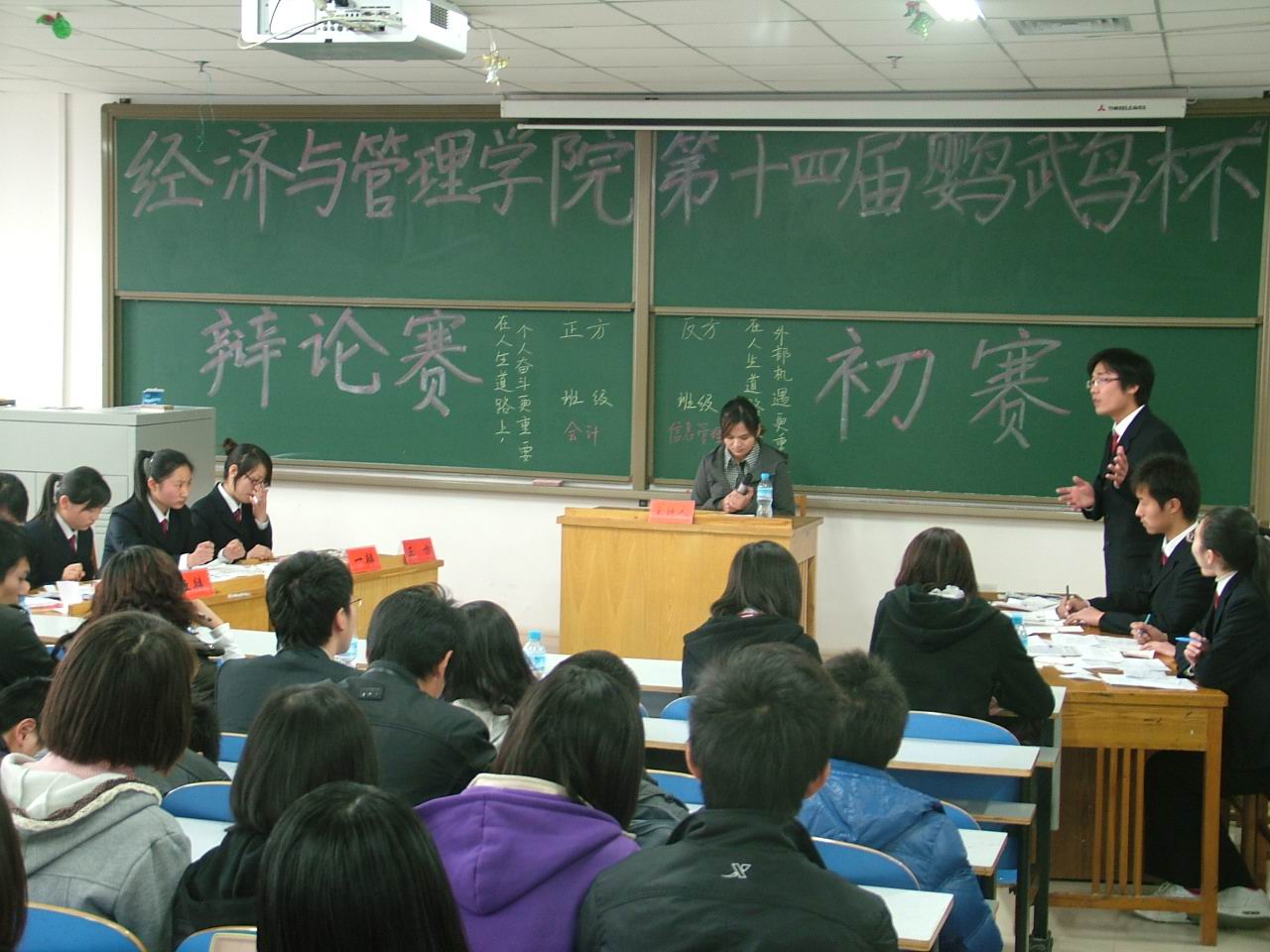 本次初赛共有我院科学校区9个新生班级代表队参加,分4场进行,共有500多人参与了此次活动。在辩论的过程中,正反双方紧紧围绕辩论主题,在陈词、攻辩、自由辩论、总结陈词等四个环节中,双方辩手才思敏捷、语言凌厉、配合默契,场上高潮迭起,场下掌声不断。经过激烈的辩论,会计09-1班、营销09-1班、营销09-2班、经济09-1班、经济09-2班等5个班级代表队进入本届辩论赛复赛。