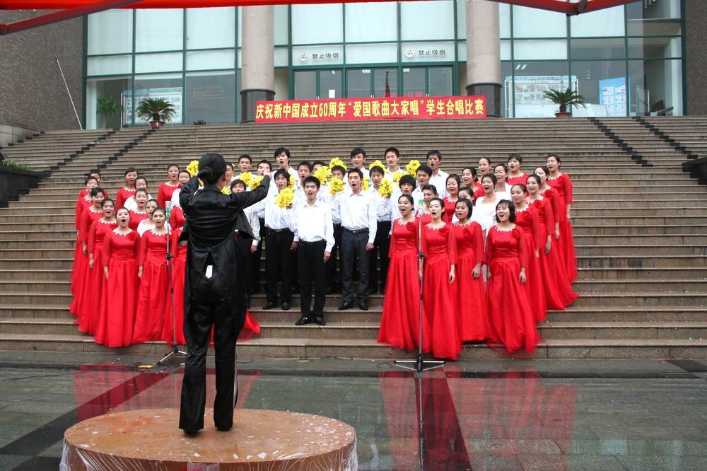 为庆祝中国建国60周年,积极推进爱国主义教育活动的深入开展,激发我院学子的爱国热情,按照校团委《关于举办庆祝新中国成立60周年爱国歌曲大家唱活动的通知》精神,我院积极组织了纪念建国60周年系列教育活动和新老校区“爱国歌曲大家唱”学生合唱比赛。