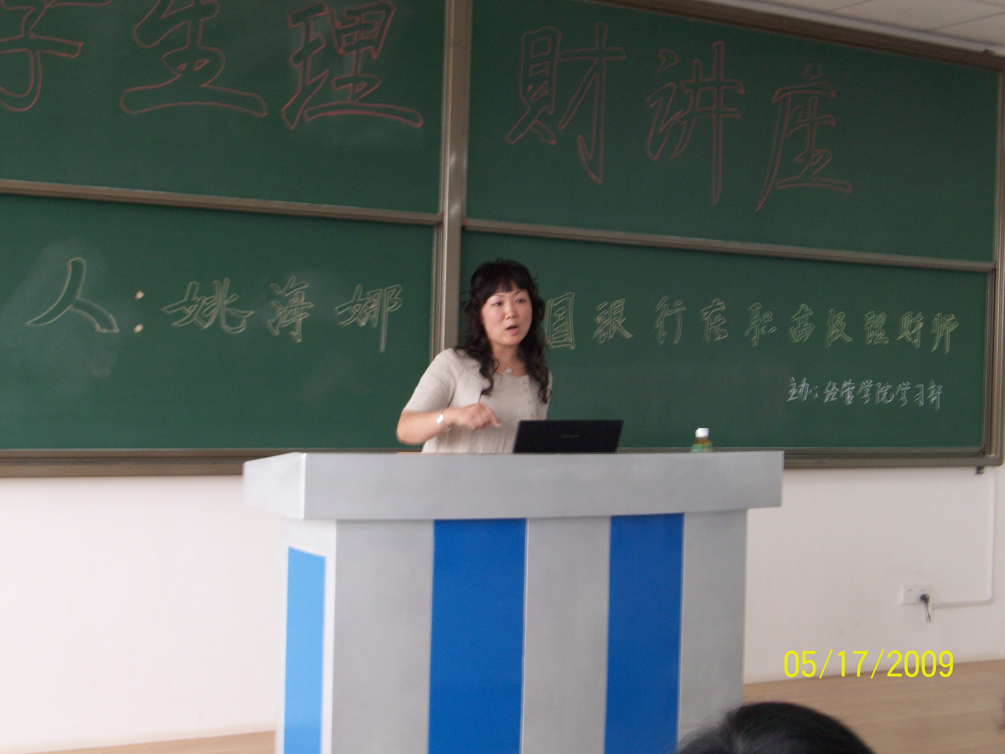 为了培养大学生健康的理财观念,养成良好的理财习惯,积累投资理财的经验,5月17日下午3:00,经济与管理学院邀请中国银行高级理财师姚海娜女士在我校科学校区电教楼102室举办了大学生理财知识讲座。