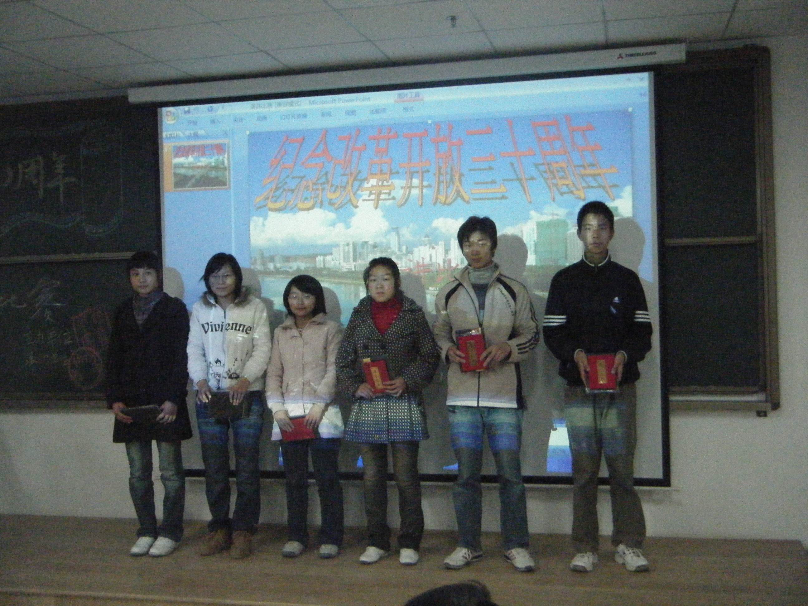 为隆重纪念改革开放三十周年,进一步弘扬时代主旋律,展现改革开放的伟大成就,展示我院学生良好的精神风貌,11月27日下午,经济与管理学院在科学校区举办了“纪念改革开放三十周年”爱国主义系列教育活动之二----演讲比赛。