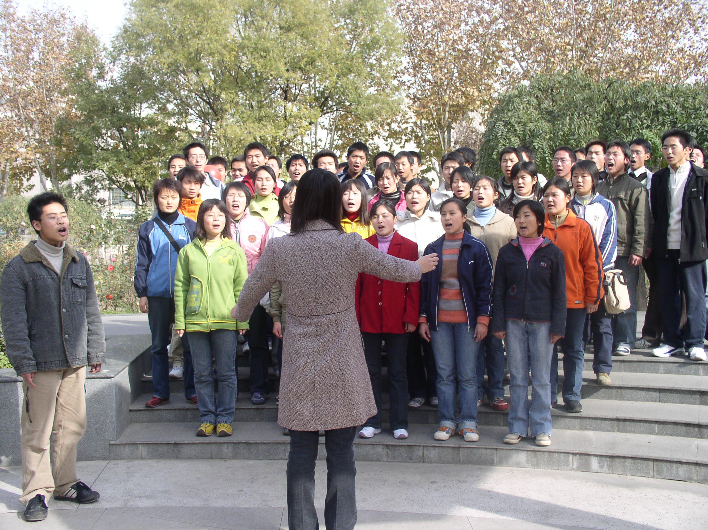 11月30日中午,我院在怡园举行了06级各班的合唱比赛。在比赛中,各班表现出了饱满的热情、积极向上的精神风貌,并且认真对待每一个细节,用高昂的歌声唱出了他们对烈士的景仰之情和继承革命遗志的坚定决心。活动中,他们合唱了《我的中国心》、《精忠报国》、《红旗漂漂》、《同一首歌》、《黄河大合唱》、《我的祖国》等革命歌曲。