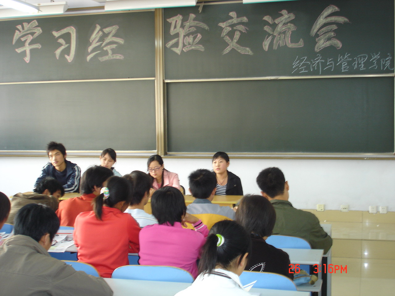 为激发广大学生的学习兴趣,提高大家的学习积极性,营造良好的学习氛围,促进我院优良学风的形成,深入的开展学风建设活动,10月26日下午,经管学院在教三楼连续召开了八场学习经验交流会。此次经验交流会邀请了一批品学兼优的同学,共吸引了500多名06级新生参加。
