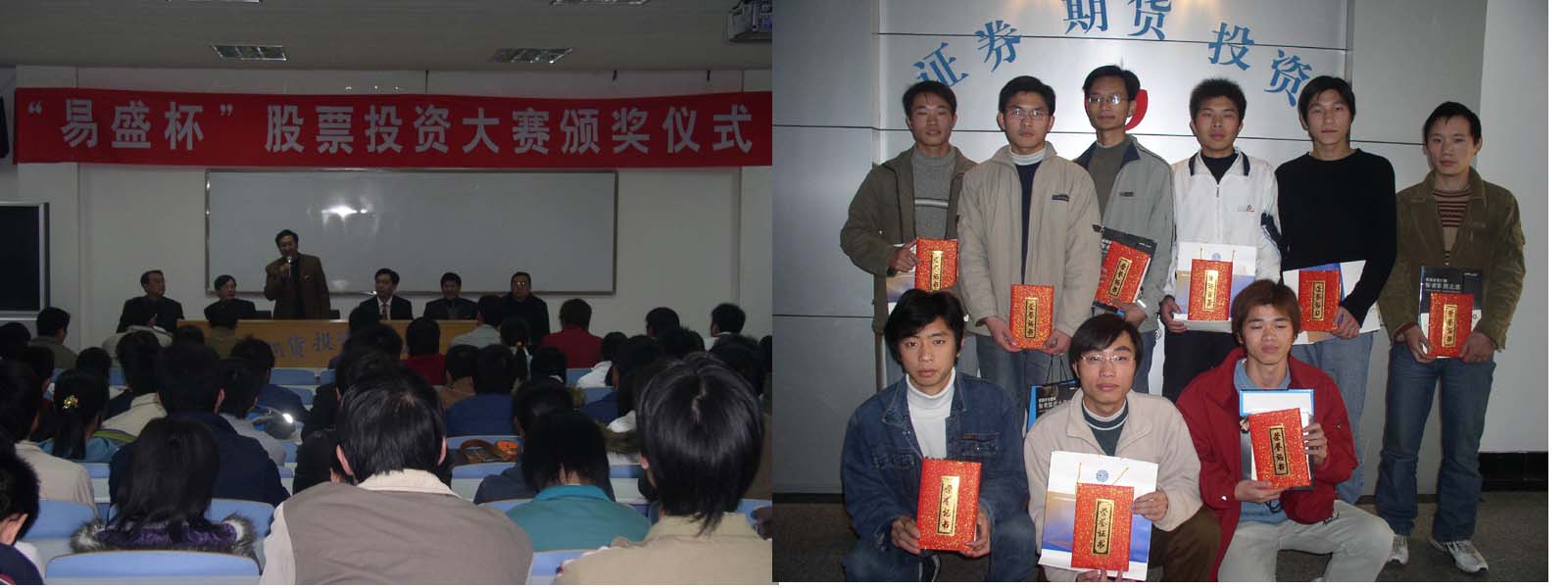 经济与管理学院举办的2005年“易盛杯”投资大赛,历时两个月,经过初赛的选拔和紧张的决赛,由竞赛评委会对计算机排名进行审核,评定出获奖选手10名。