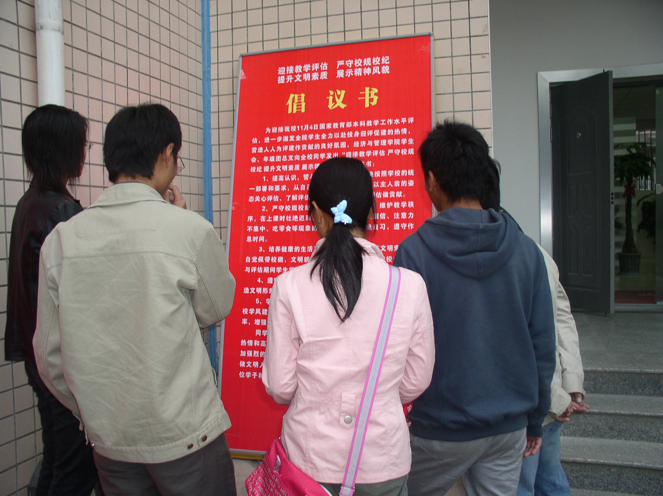 年级团总支向全校同学发出“迎接教学评估严守校规校纪 提升文明素质 展示精神风