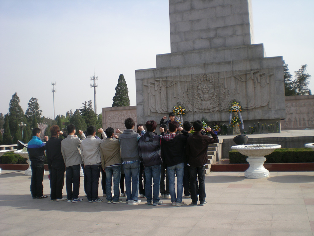 在庄严的革命烈士纪念碑前,同学们整齐严肃的站着。党员代表申丹飞代表我院全体学生党员向革命英雄纪念碑敬献鲜花拉开了整个扫墓活动的序幕。同学们低吟致悼词来表达对先烈的缅怀之情,随后全体成员在烈士英雄纪念碑前向革命烈士致宣誓词:继承革命先烈遗志,做时代优秀青年。最后全体同志默哀一分钟,向革命烈士纪念碑鞠躬,以表达深切的哀悼。仪式结束后,同志们参观了纪念馆。