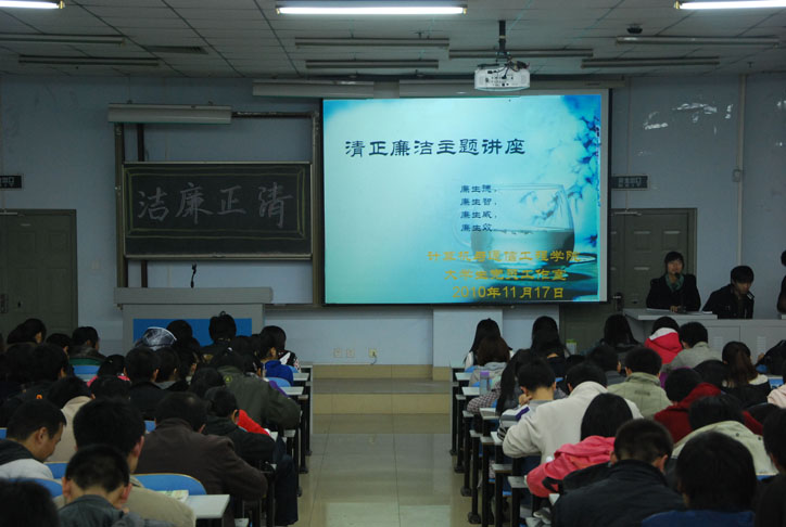 为了对我院学生党员加强清正廉洁教育,11月17日晚计算学院大学生党员工作室在东风校区教三楼100室举办了“清正廉洁”专题讲座。我院全体学生党员、入党积极分子参加讲座。