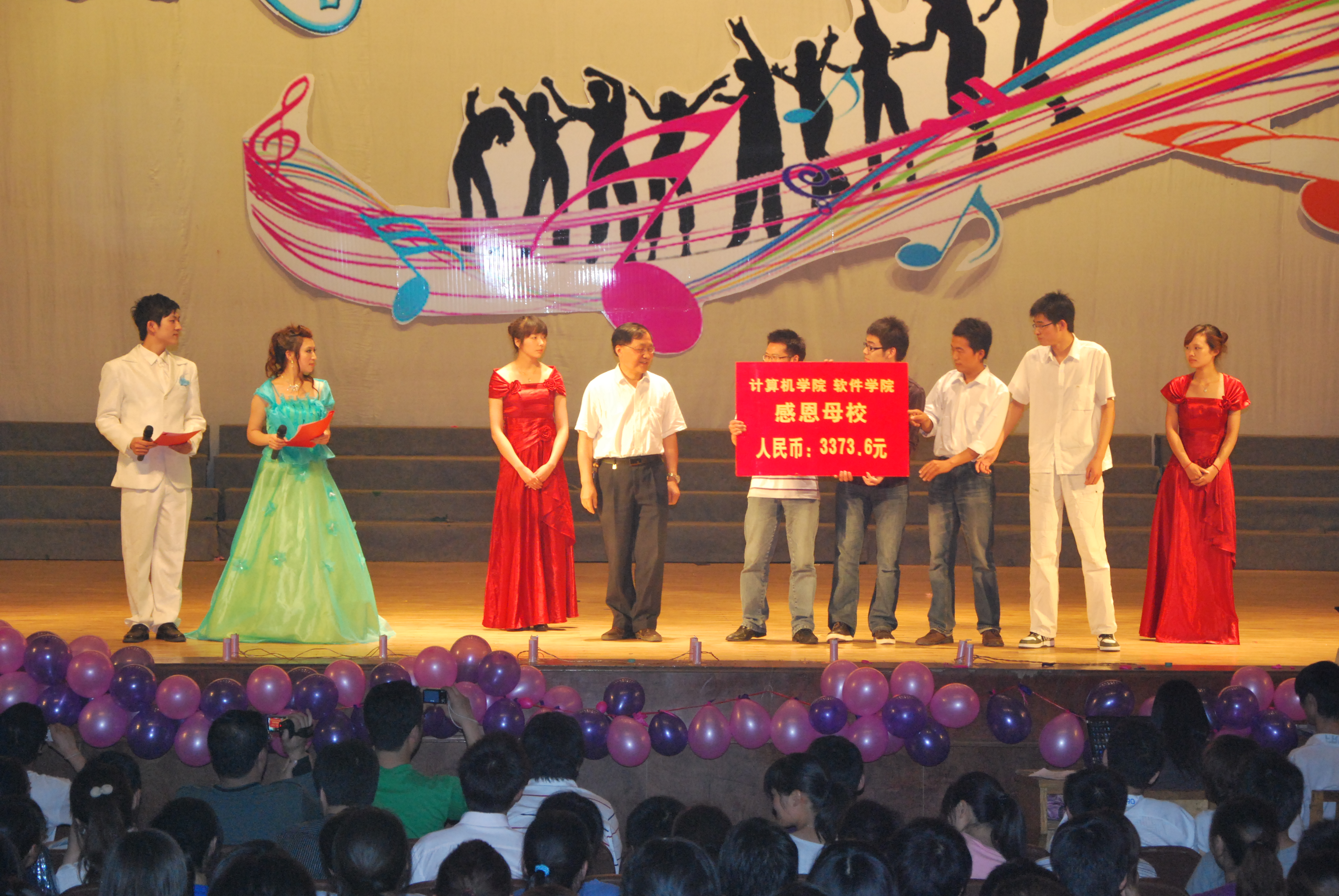 演出开始前,一段院领导、系主任和辅导员寄语毕业生的视频令全场观众耳目一新,各位老师的谆谆教导和热情鼓励使毕业生们倍感温馨、亲切,过去4年的点点滴滴仿佛历历在目。伴随着观众雷鸣般的掌声,一段热情奔放的歌伴舞《站起来》拉开了序幕。院长甘勇教授走上前台发表了热情洋溢的讲话,他代表学院全体师生向毕业生表达最衷心的祝福,希望毕业生们学以致用,奉献社会,创造灿烂的明天。演出中还进行了毕业生感恩母校活动,党总支书记李学桥教授代表学院接受毕业生的捐赠,感谢毕业生同学的感恩活动为母校和学弟学妹们留下了美好的印象,希望毕业生同学在离校的最后阶段站好最后一班岗,胸怀远大志向,为社会贡献自己的力量!