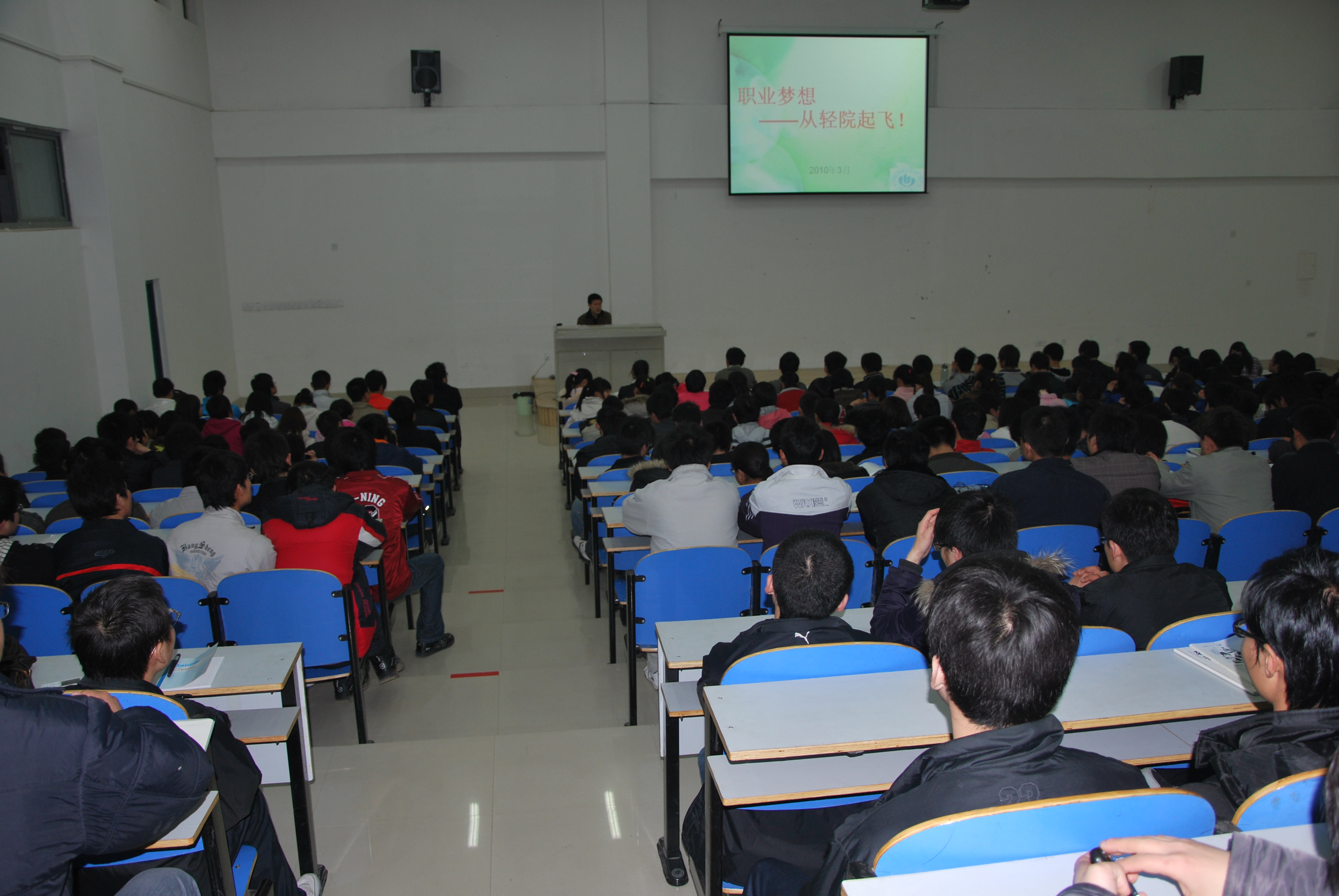 晚7点,计算机与通信工程学院、软件学院在科学校区电教楼408教室举办“职业梦想,从轻院起飞!”职业规划专题讲座。党总支副书记卢中宁老师就大学生职业规划的有关课题与09级500余名本专科新生进行了交流。