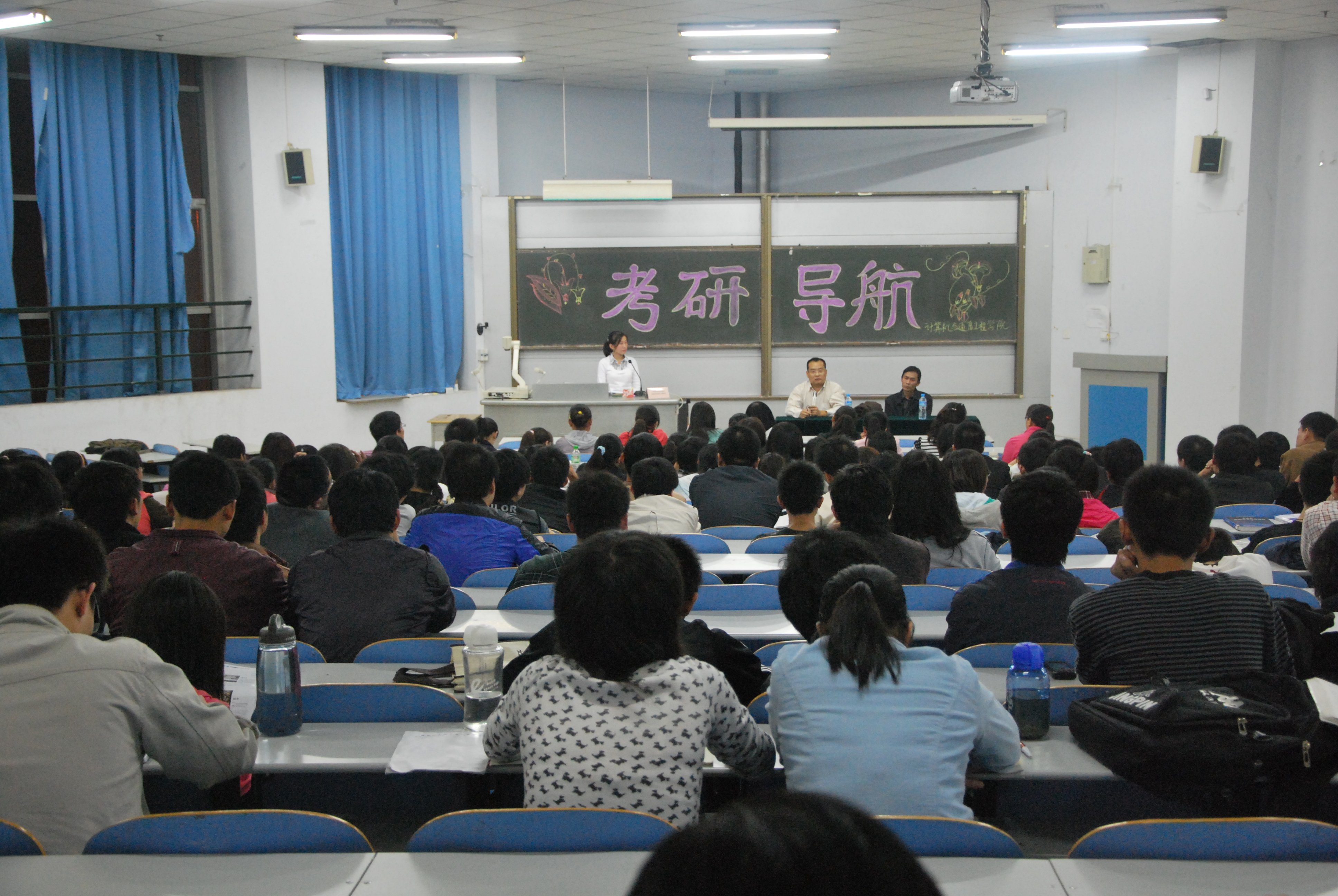 为消除我院学生在考研方面的疑惑,帮助他们较早的进行自我定位,让有志考研的同学寻求一条更有效的学习途径,更快地实现梦想。10月12日晚7:30计算机与通信工程学院、软件学院在东风校区教三203成功举办的“考研导航”,副院长张素智老师和金保华老师应邀出席,为同学们做精彩的考研指导。