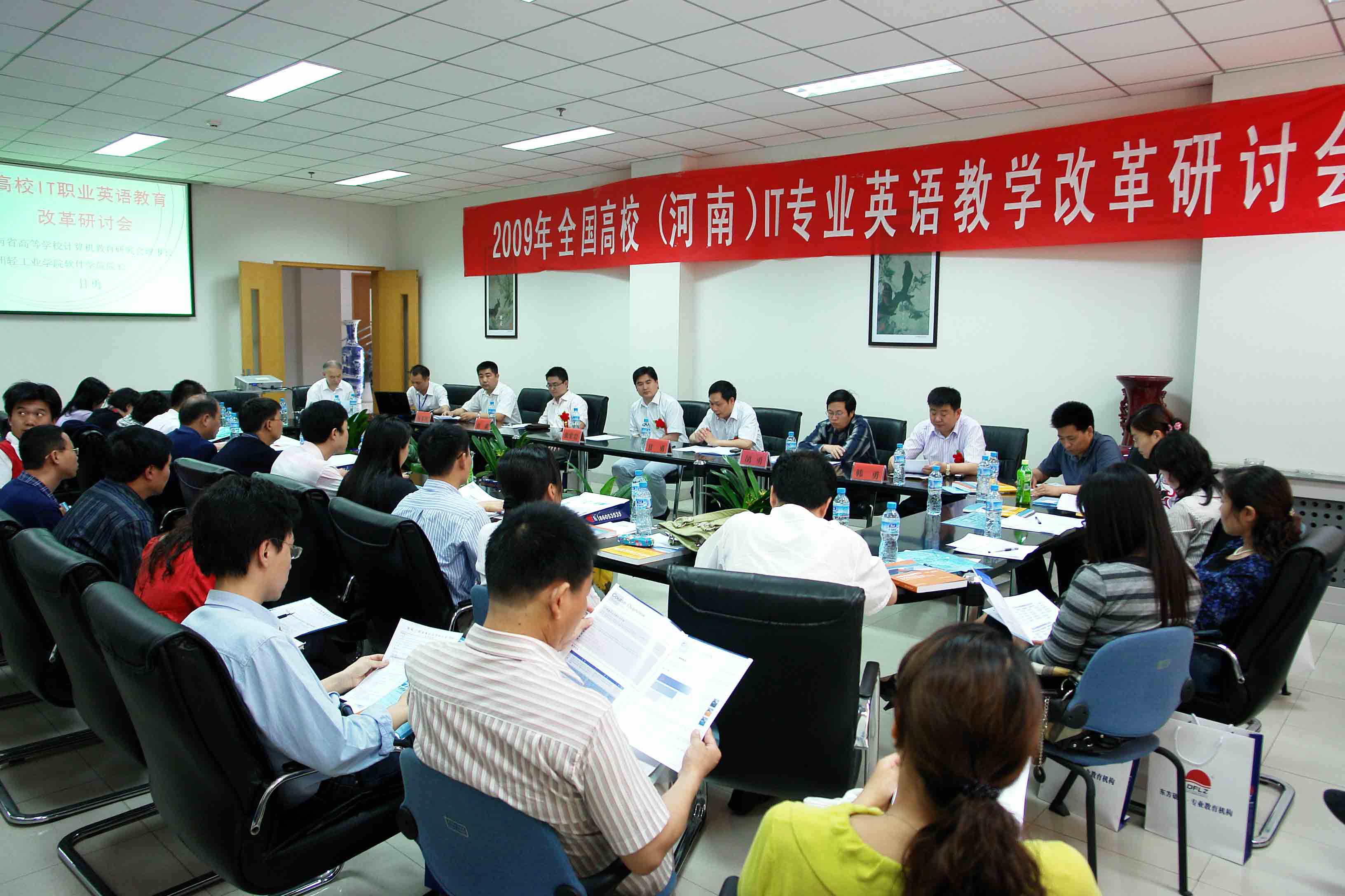 由河南省高等学校计算机教育研究会和工业和信息化部电子教育与考试中心全国IT英语项目组举办的 “2009年度全国高校(河南)IT专业英语教学改革研讨会”,于2009年5月27日在我院召开。来自全省30多所高等院校的教师代表、国家中部软件园、软件企业代表60多人参加了本次会议。