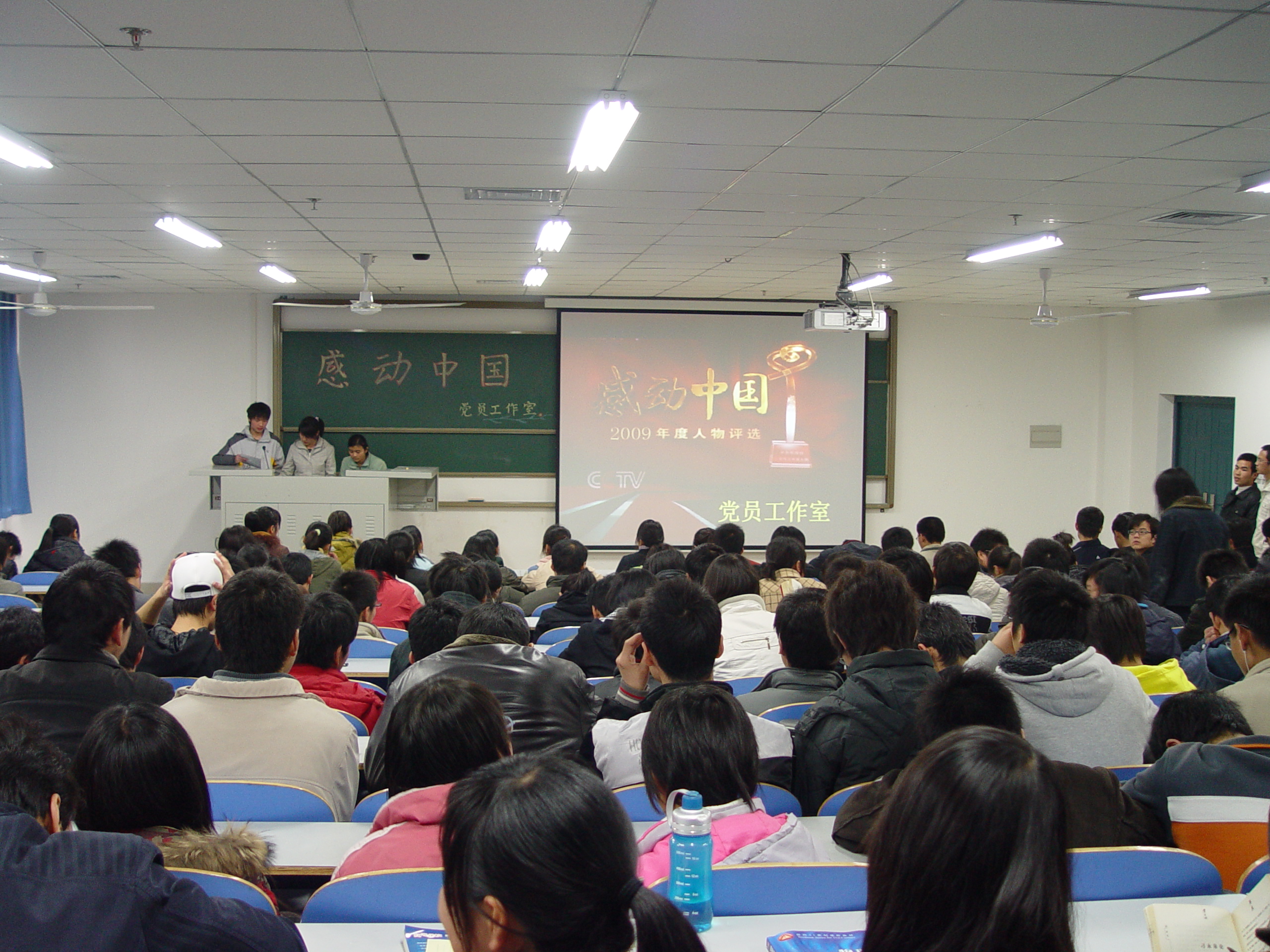 3月12日下午4:30, 由计算机与通信工程学院“大学生党员工作室”主办的“感动中国 感动你我”主题活动在科学校区电教楼202教室举办,广大08级新生观看了影片《2008年度感动中国十大人物先进事迹》,感悟先进人物的感人事迹,围绕先进展开了热烈而生动的主题讨论。