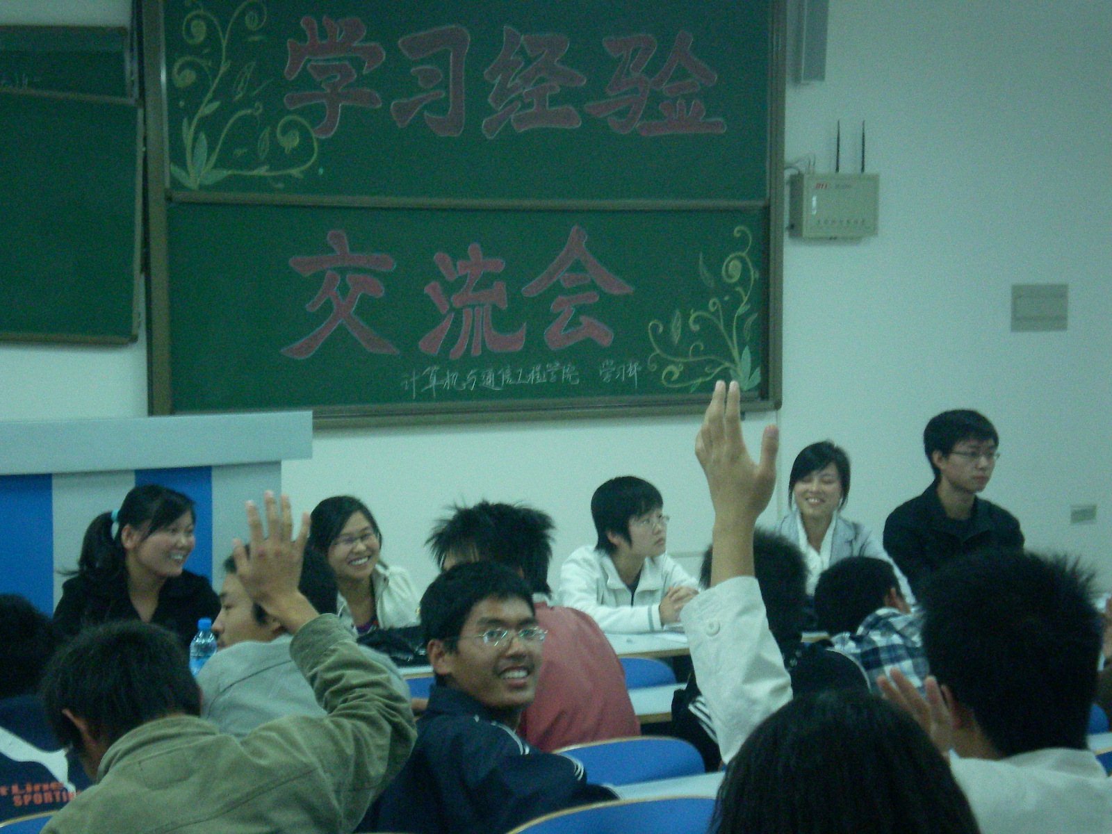 参加这次学习经验交流会的08级新生来自计算机学院的各专业班级,交流会首先以嘉宾介绍自己学习经验和心得体会拉开序幕;之后,以自由互动的方式进行提问和解答。大一新生们表现积极踊跃,表现出强烈的求知愿望,学长们热情洋溢的回答了他们问题,向他们谈出了真实的感受和宝贵的经验。