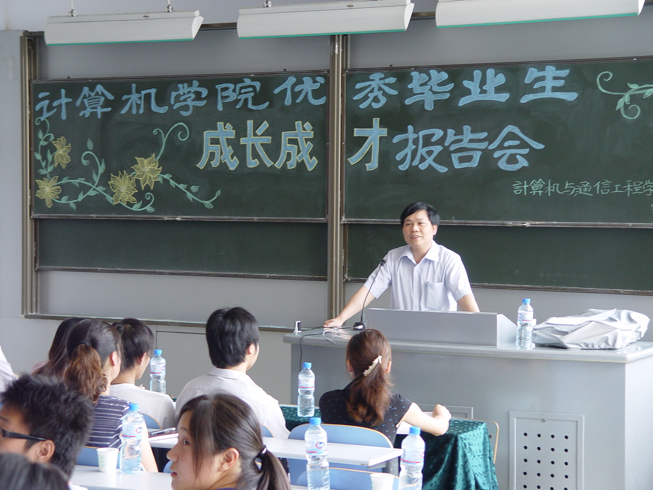 6月15日下午14:30在教三楼202,计算机与通信工程学院隆重举行了优秀毕业生成长成才报告会。甘勇院长,贾菁菁副书记和02级7位优秀毕业生出席会议并讲话,大一、大二、大三学生积极到会聆听。