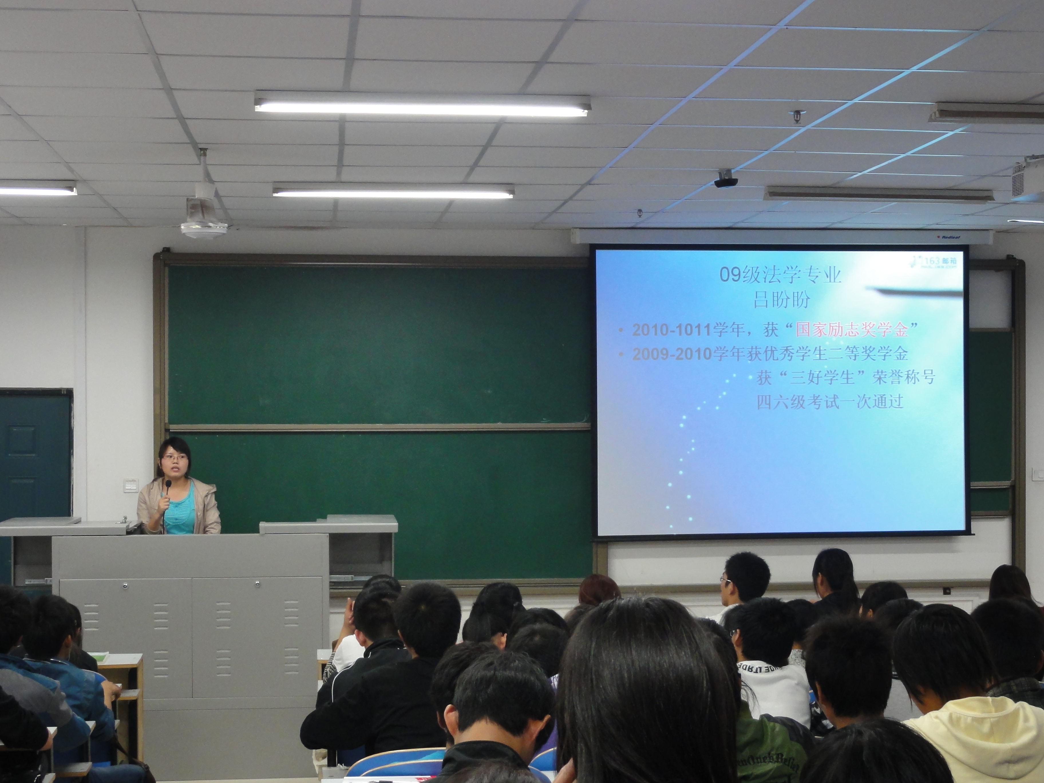 为了丰富大一新生的大学生活,使2011级同学更好地完成从高中到大学角色的转变,融入到大学学习氛围,政法学院于10月21日在科学校区主教楼218教室成功举办学习经验交流会。