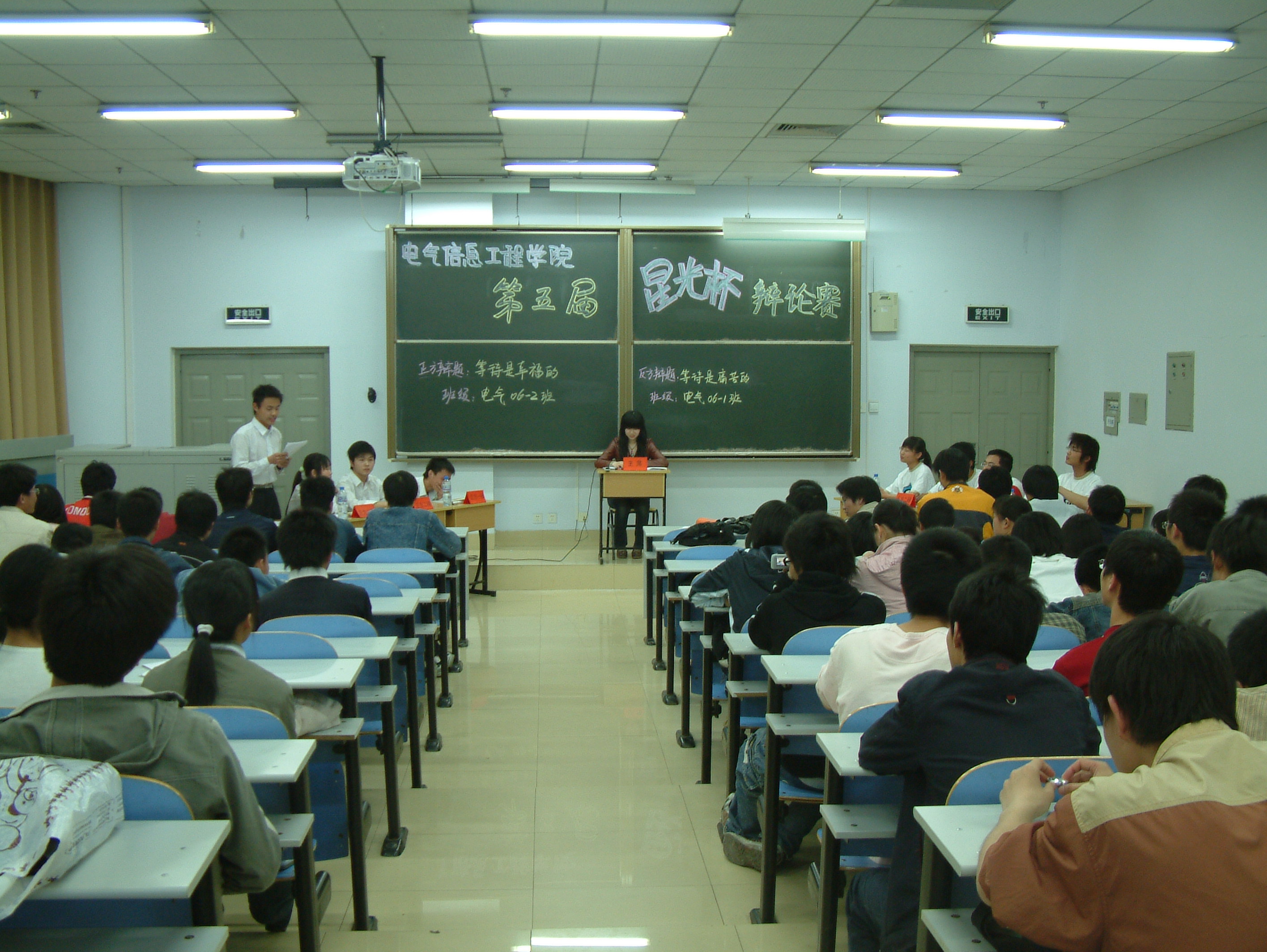为庆祝郑州轻工业学院30周年校庆和第十四届科技文化艺术节活动的开展,丰富大学生课余文化生活,提高大学生综合素质,电气信息工程学院组织举办以“激情飞扬、展我风采”为主题的第五届“星光杯”辩论赛。