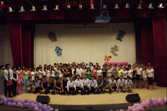 本次“宿舍之星”评比大赛集学习、守纪、文体表现、宿舍文化于一体,以宿舍为参与赛单位;以“思想上进、学习优良、文明守纪、团结协作”为评定标准,包括了宿舍DV展示、才艺表演、及现场叠军被等环节。经过激烈角逐,科学校区7号楼203宿舍等十个宿舍获得“十佳宿舍”称号;科学校区5号楼203宿舍等五个宿舍获得“优秀宿舍”称号;吕娜等6位同学获得“优秀个人”称号;笑点不断的话剧《灰姑娘》和展现大学生兼职的现实小品《走出温室》获得“最佳才艺奖“称号。