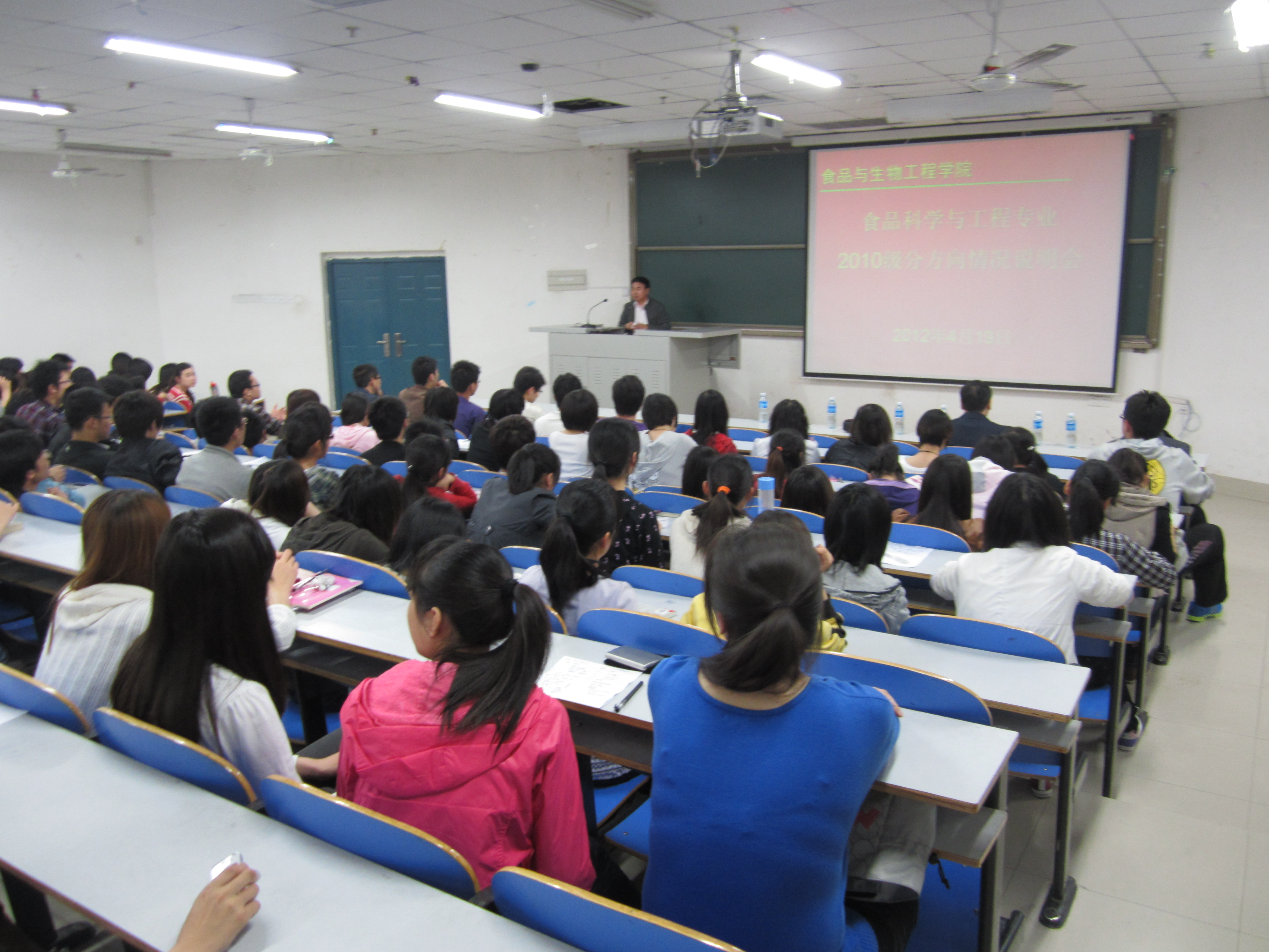 2012年4月19日下午,食品与生物工程学院在科学校区电教楼108教室,召开了食品科学与工程专业2010级学生专业思想教育会。我院党总支吴占超副书记、食品科学工程系主任纵伟教授、烟草工程系主任王建民教授、辅导员老师和2010级食品科学与工程专业全体学生参加了此次会议,会议由党总支吴占超副书记主持。