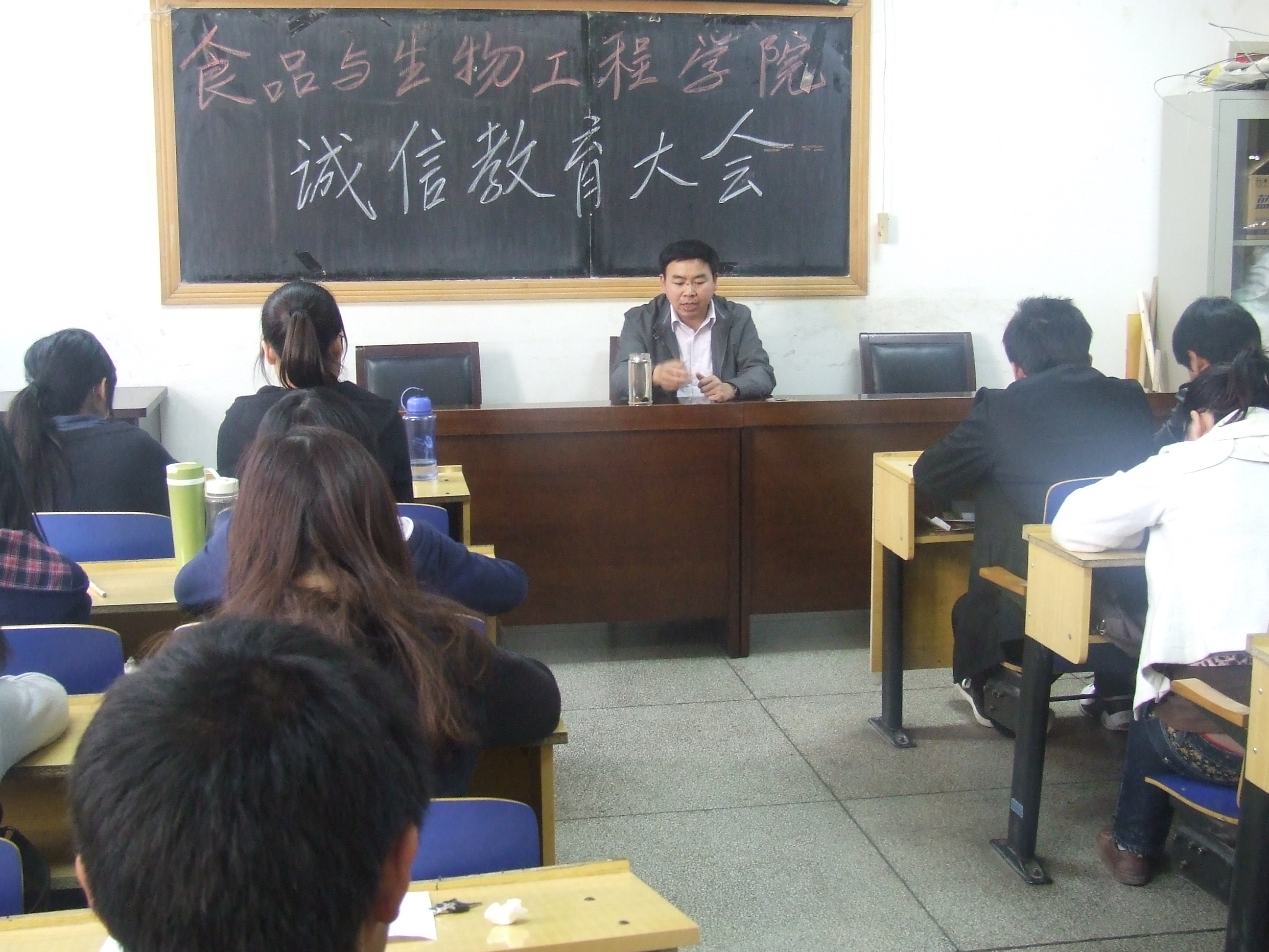 为提高我院贷款毕业生对国家助学贷款政策的认识,进一步强化诚信还款意识,2012年3月31日下午3点,食品与生物工程学院在东四楼215召开2012届贷款毕业生诚信教育大会。我院党总支副书记吴占超老师、贷款工作负责老师、毕业班辅导员和全体贷款毕业生参加了本次大会。