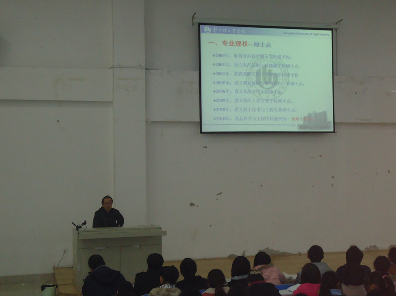 为加强2011级学生对本专业学习和职业生涯规划教育,积极开展2011级学生的入学教育,2011年10月和12月份,食品与生物工程学院在科学校区电教楼408召开了以“专业、职业、事业”为主题的讲座,讲座由我院副院长景建洲教授和刘延奇教授主讲。
