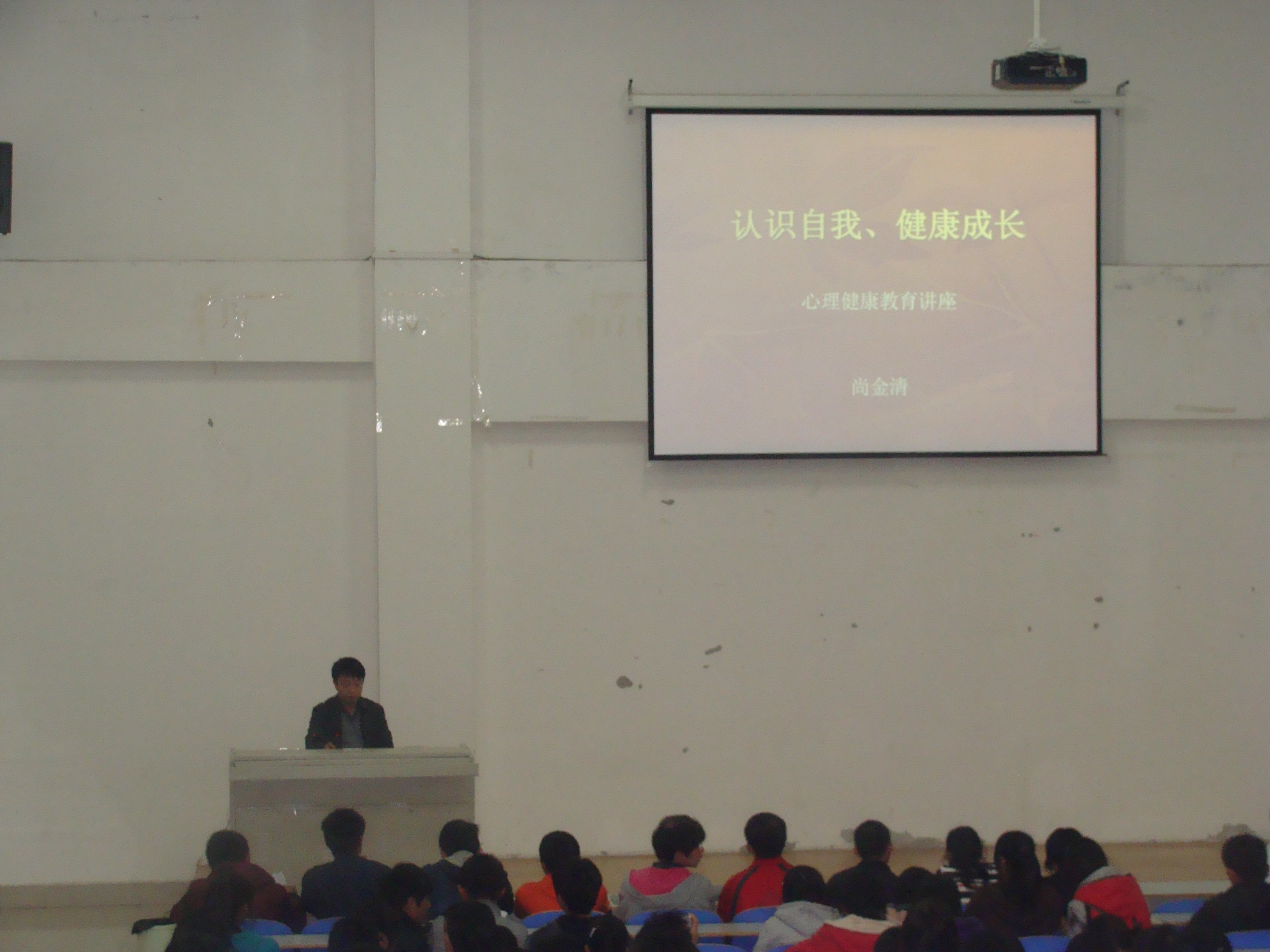 为促进2011级新生更好地适应大学生活,积极开展针对2011级新生的入学教育,2011年11月3日下午,食品与生物工程学院在科学校区电教楼408教室组织了以“认识自我,健康成长”为主题的心理健康讲座。