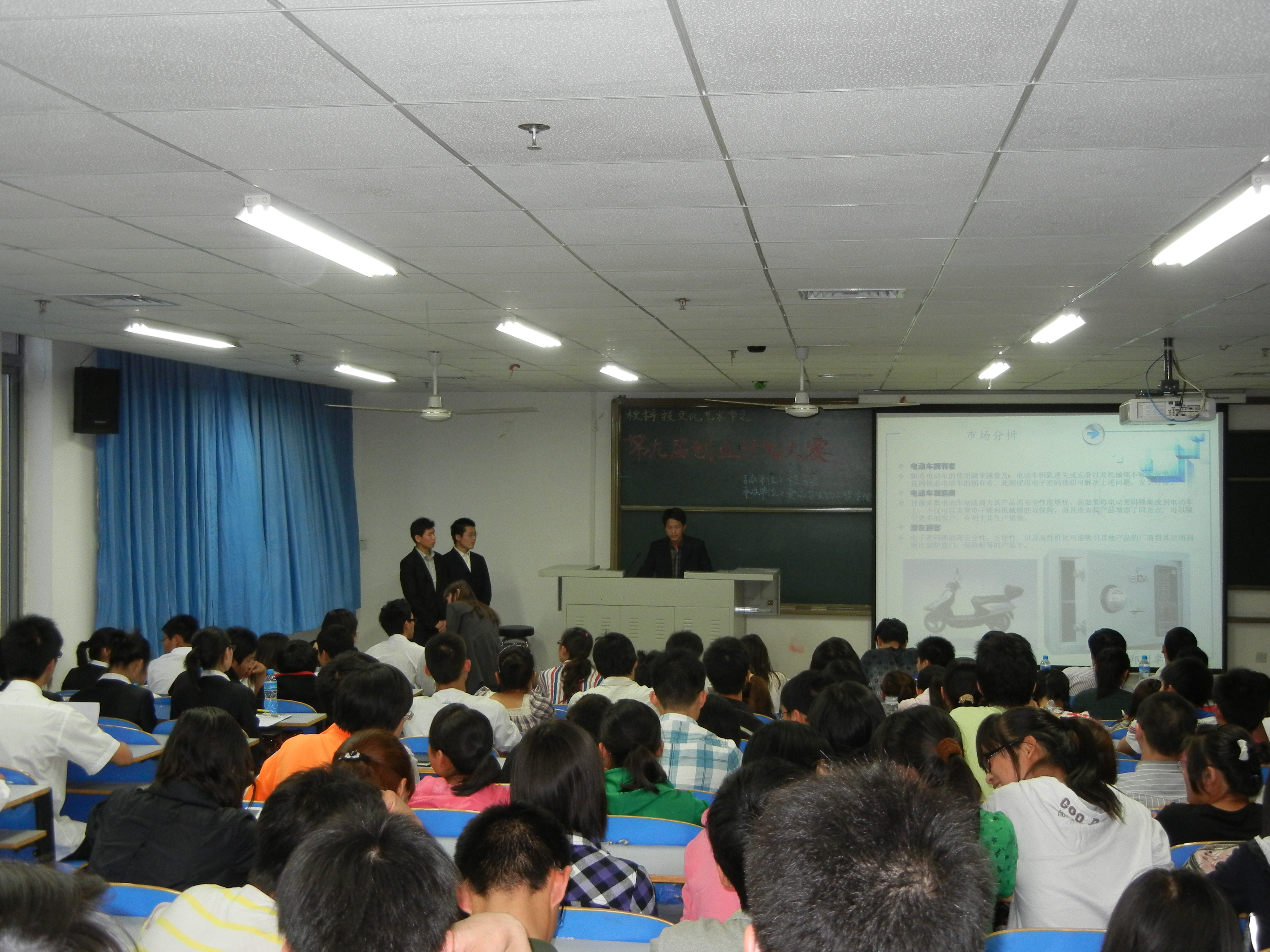 本次参加决赛答辩的10件作品是经过各院系预赛、初评、预答辩等几个环节,从众多参与比赛的作品中层层选拔产生的,他们分别来自食品与生物工程学院、电气信息工程学院、经管学院、机电工程学院、计算机学院、技术物理系和赛扶团队。决赛答辩分项目陈述和评委提问两个环节进行。在项目陈述环节,同学们分别介绍了自己创意中的公司,以及公司的经营理念、选题背景、产品服务、财务状况、投资计划、市场营销策略等;在评委提问环节,评委老师根据同学们制作的创业计划书与陈述情况,分别就产品技术、广告设计、财务状况等方面提出了问题,参赛队员一一作答。详实的陈述、评委的提问与精彩的回答博得了现场观众阵阵掌声。经过激烈的比赛,来自食品与生物工程学院的《唯德食品股份有限公司》获得第一名,来自赛扶团队的《郑州蛋壳传媒有限责任公司》和电气信息工程学院的《东风电力电子自动化有限公司》分获二、三名。