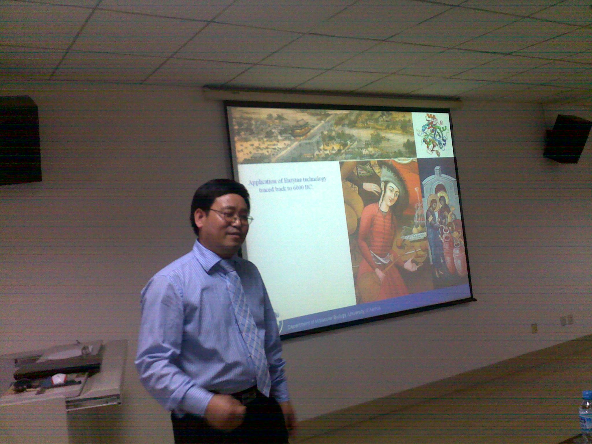 首先,郭教授简单讲述了丹麦高等教育的历史、现状以及未来的发展趋势,比较了国内外教育特点,鼓励大家申请国外进修学习机会。接下来,重点围绕蛋白质技术――酶的高效利用讲述了酶的发现、酶的改性、酶的应用以及他们团队卓有成效的研究成果,内容丰富、观点新颖、产学研紧密结合,给大家留下来深刻的印象。整个报告过程,郭教授用流利的英语,穿插中文解释,用简单的语言讲解了深刻的科学道理,师生们一致评价受益匪浅。