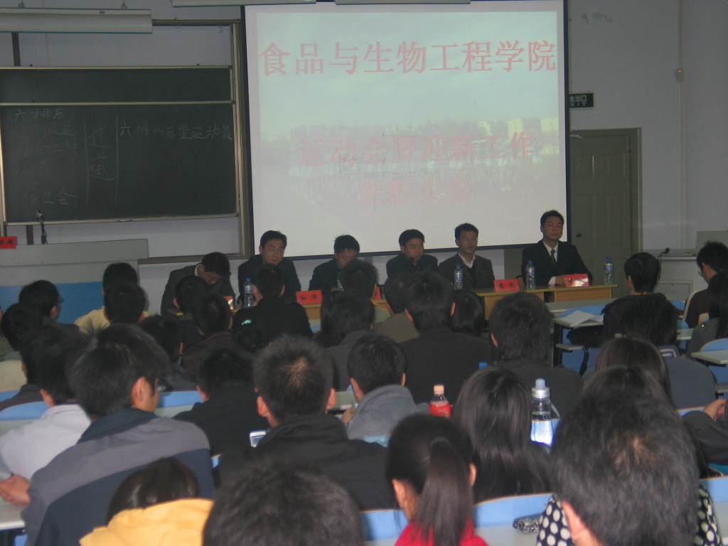 11月13日下午,食品与生物工程学院在教三楼200召开食品与生物工程学院校第二十四届运动会暨迎新工作表彰大会。校运动会参与组织的同学及参赛运动员、参与迎新工作同学、07级班级干部、08级学生代表参加大会,学院党总支吴占超副书记、食工学院全体辅导员出席了大会。