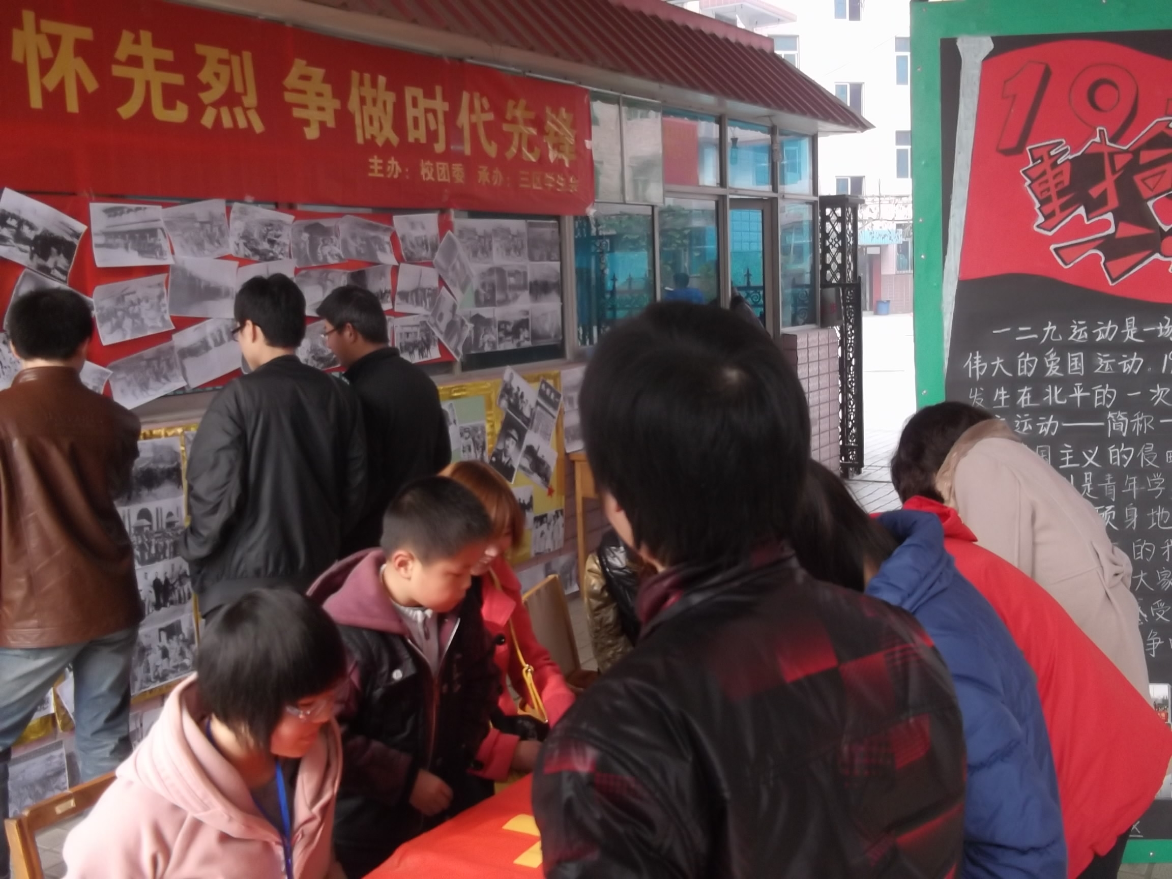 本次图片展历时3天,集中展示了“一二•九”运动前后所经历的重大历史事件,包括辛亥革命、五四运动、国共合作、抗日战争、开国大典等方面,生动地再现了以广大青年学生为代表的知识分子为近代中国复兴崛起的伟大历史进程和巨大成就。展出期间,同学们络绎不绝的前来观看,并在“追忆一二九 传承爱国志”的条幅上纷纷签名,以表达自己的爱国之心。