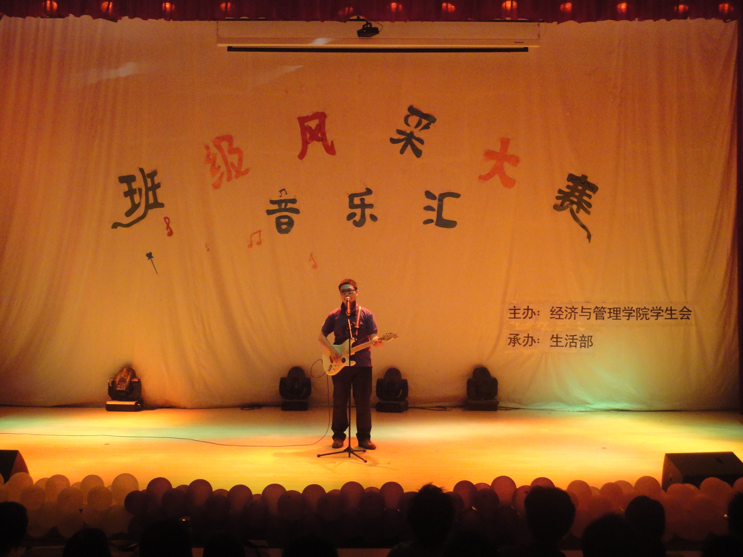 本次“班级风采大赛”系列活动主要包括知识竞答、运动比拼、音乐汇三个环节,历时半个月。5月29日晚,我院在科学校区电教楼208室成功举办了“班级风采大赛之音乐汇”。比赛中,同学们激情的演唱,一首首深入人心的校园歌曲把现场气氛一次次推向高潮。特别是演唱《听袁惟仁弹吉他》的同学独自一人演唱了歌曲中3个歌手的声部,一个人演唱了三个人的歌,令现场的同学赞叹不已,把音乐汇推向了又一个高潮,街舞、相声、小品等友情演出让音乐会更加丰富多彩。
