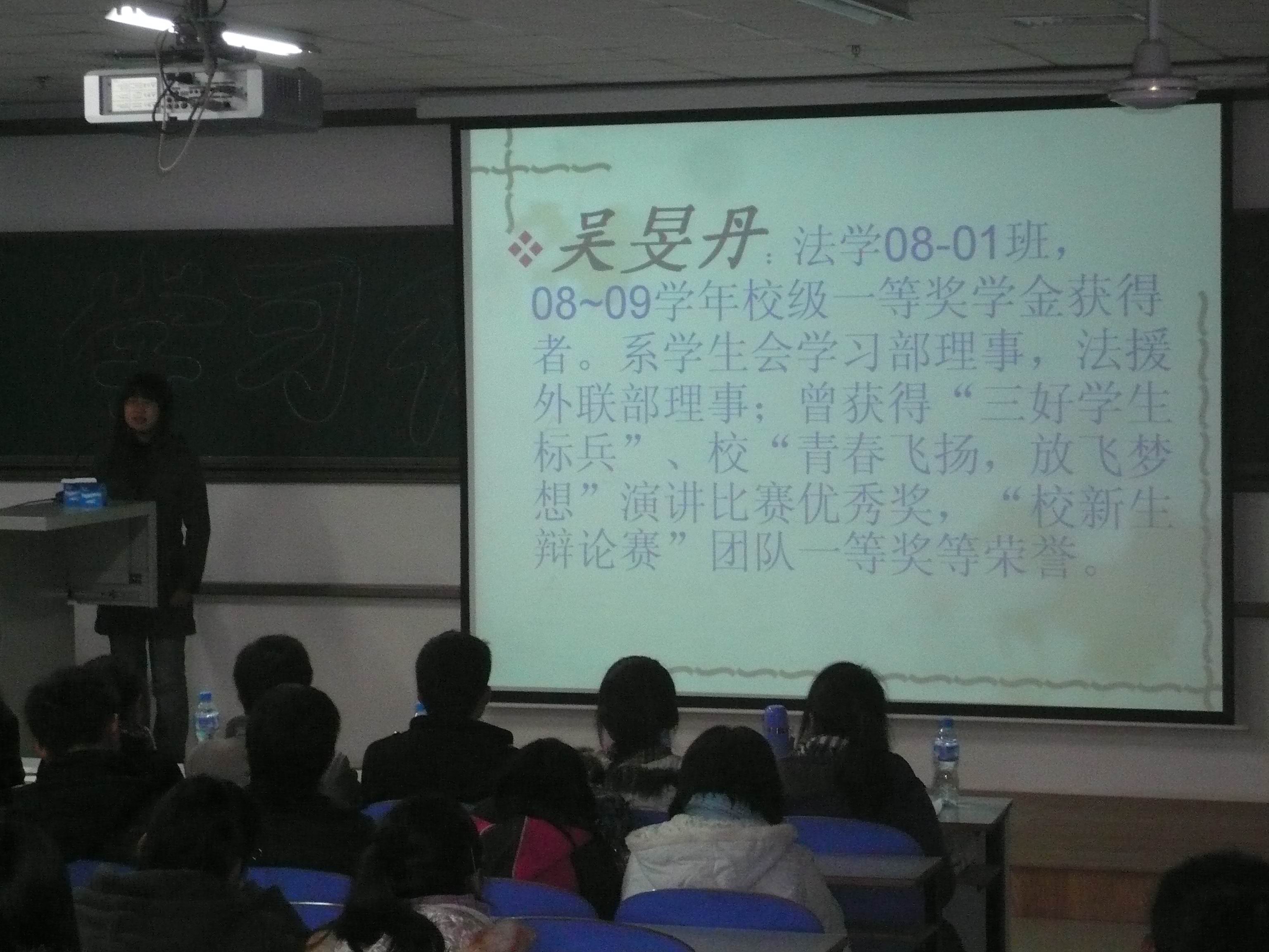 为帮助科学校区新生尽快适应大学的学习和生活,法政系于11月26日下午3:00在科学校区电教楼举办了学习经验交流会,交流会气氛活跃,参加交流的同学受益匪浅。