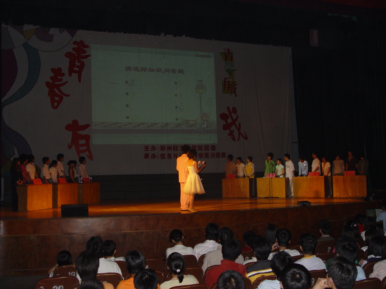 为庆祝我校建校三十周年,积极推进文化校园、文明校园与和谐校园建设,由校团委主办、信息与计算科学系分团委承办的“青春有我”大学生形象展示大赛决赛于5月11日晚19点30分在大礼堂成功举行。