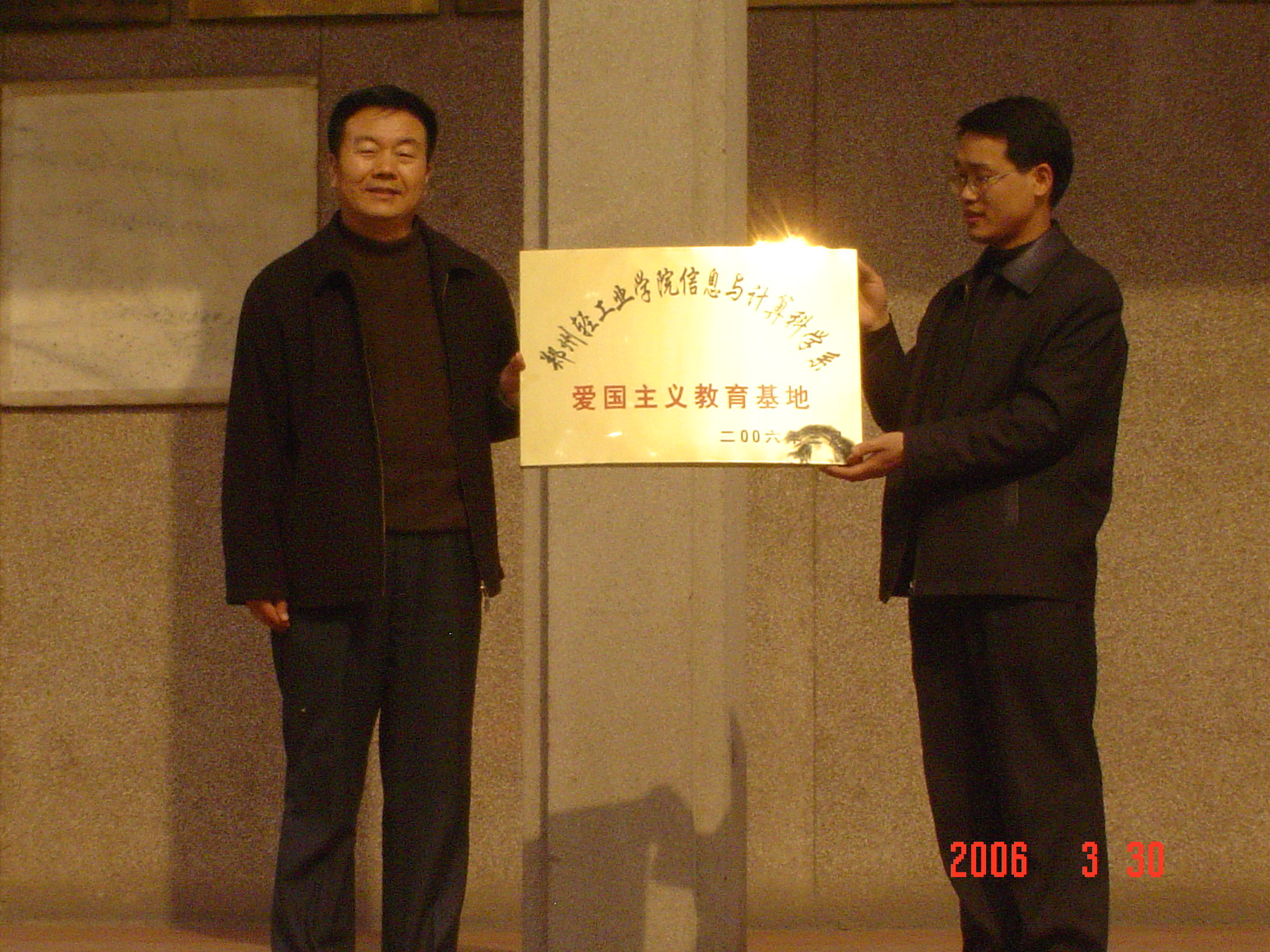 我系与郑州市烈士陵园共同签定了协议并正式挂牌,双方一致认为要把基地建设好,充分发挥它的爱国主义教育作用。之后,同学们怀着崇敬的心情参观了革命烈士事迹陈列馆,在革命英雄纪碑前,同学们敬献花篮,默哀缅怀先烈英雄事迹,继承发扬先烈遗志。