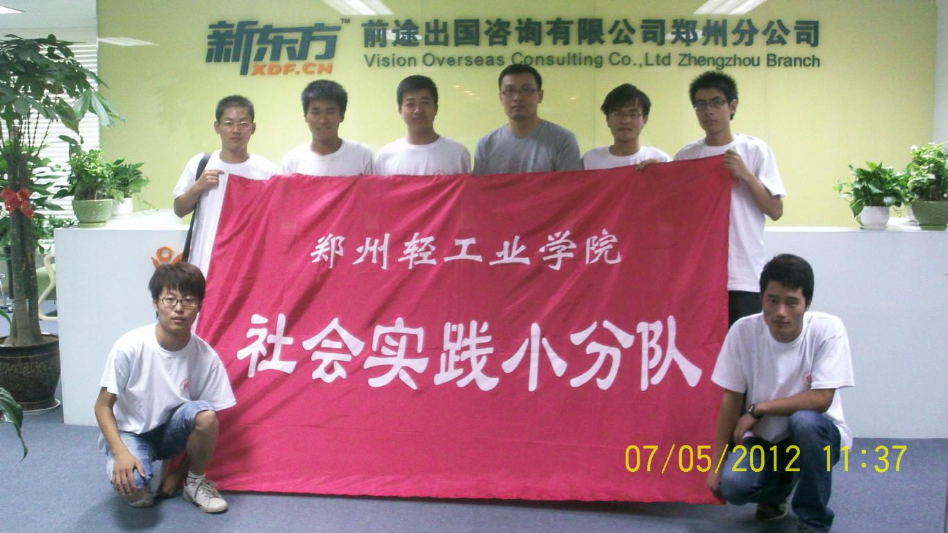 7月5日,小分队全体8名队员身着白色的校服,热情洋溢地开始他们“访企业招聘精英,求职业发展规划”的实践活动。上午十点,队员们到达此行第一站——新东方教育科技集团郑州分部,人力资源部部长王崇波老师以座谈会的形式接待了他们。王老师首先介绍了新东方的发展历程和业务范围,并与在座同学谈论大学生应该做好的三件事:第一,学好专业知识,提高自身综合素质;第二,学会做人,锻炼自己为人处事的能力;第三,了解社会,走近社会。然后,王老师介绍了新东方的三大公益品牌活动,即“梦想之旅”全国巡回讲座、“新东方自强基金”项目和“新东方教师社会责任行”。