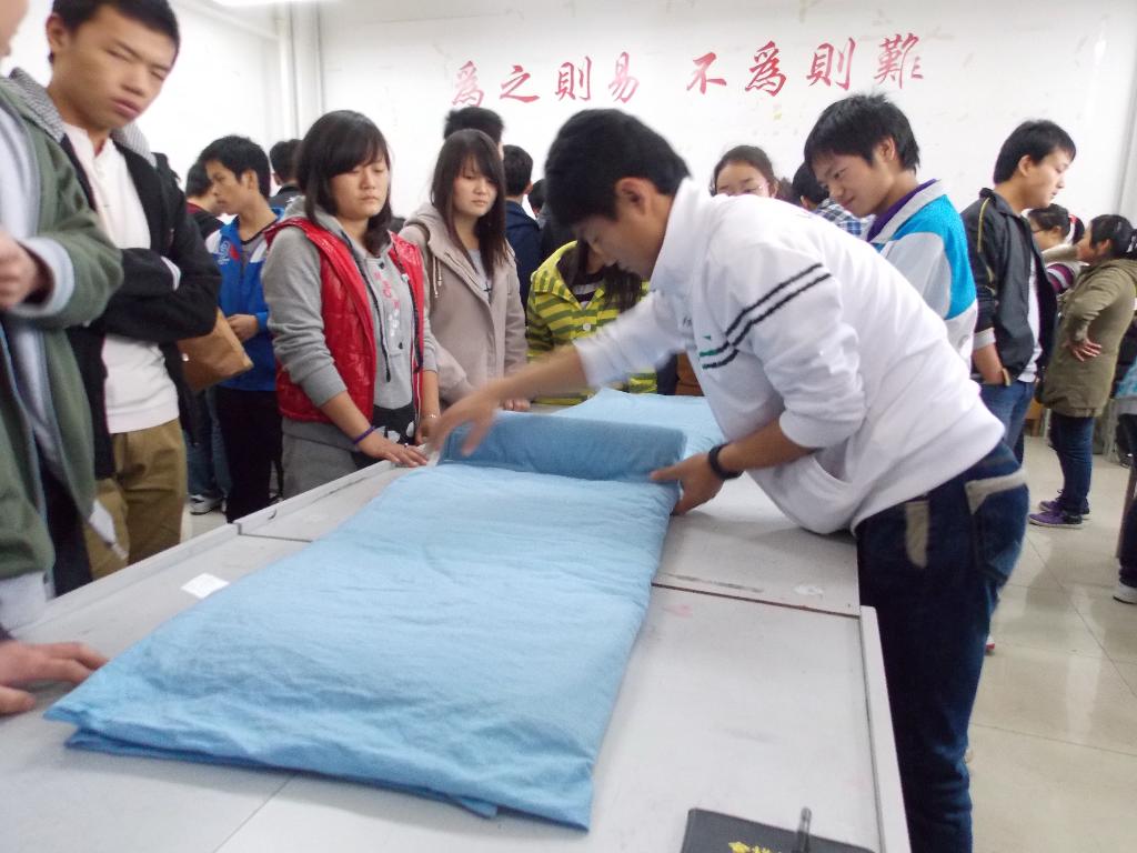 通过此次活动,12级新生学会的不仅是如何叠好军被,更认识到自我管理、自我规范的重要性,为他们更好的融入大学,融入宿舍这个“温馨的家”做好了充分的准备。