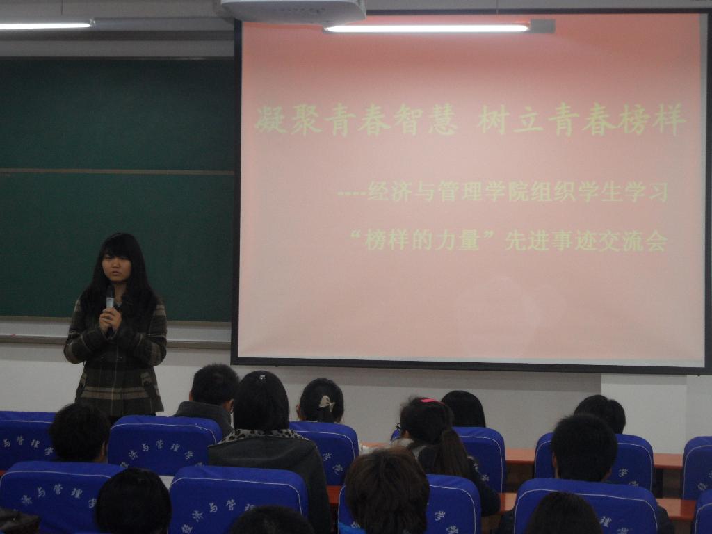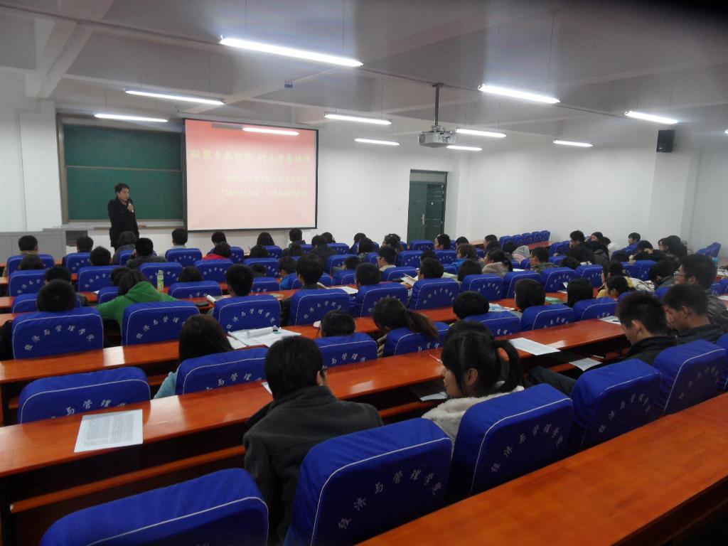 11月15日下午,我院组织2012级全体新生在科学校区电教楼208聆听了由校学工部、校团委主办的首届“轻院学子·榜样力量”优秀大学生先进事迹报告会,学生反应热烈。会后,我院组织学生会、年级团总支学生干部及学生代表150余人参加了学习“轻院学子·榜样的力量”先进事迹交流会。经济与管理学院党总支副书记刘洪民,分团委老师及新生辅导员参加了交流会。