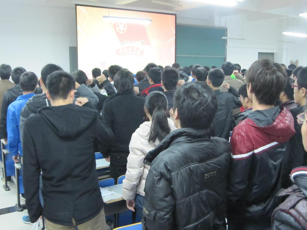最后,分团委书记宋文军老师对大家加入共青团组织表示热烈的欢迎,并要求大家在未来的四年大学生活中继承和发扬一二九精神,努力培养责任意识和感恩意识;珍惜时光,勤奋学习,努力提高自身综合素质;学习贯彻党的十八大精神,诚信做人,自强不息,努力加强自身道德修养;积极地向党组织靠拢,发扬党的光荣传统,用自己的实际行动表明自己无愧于“共青团员”这个光荣的称号。